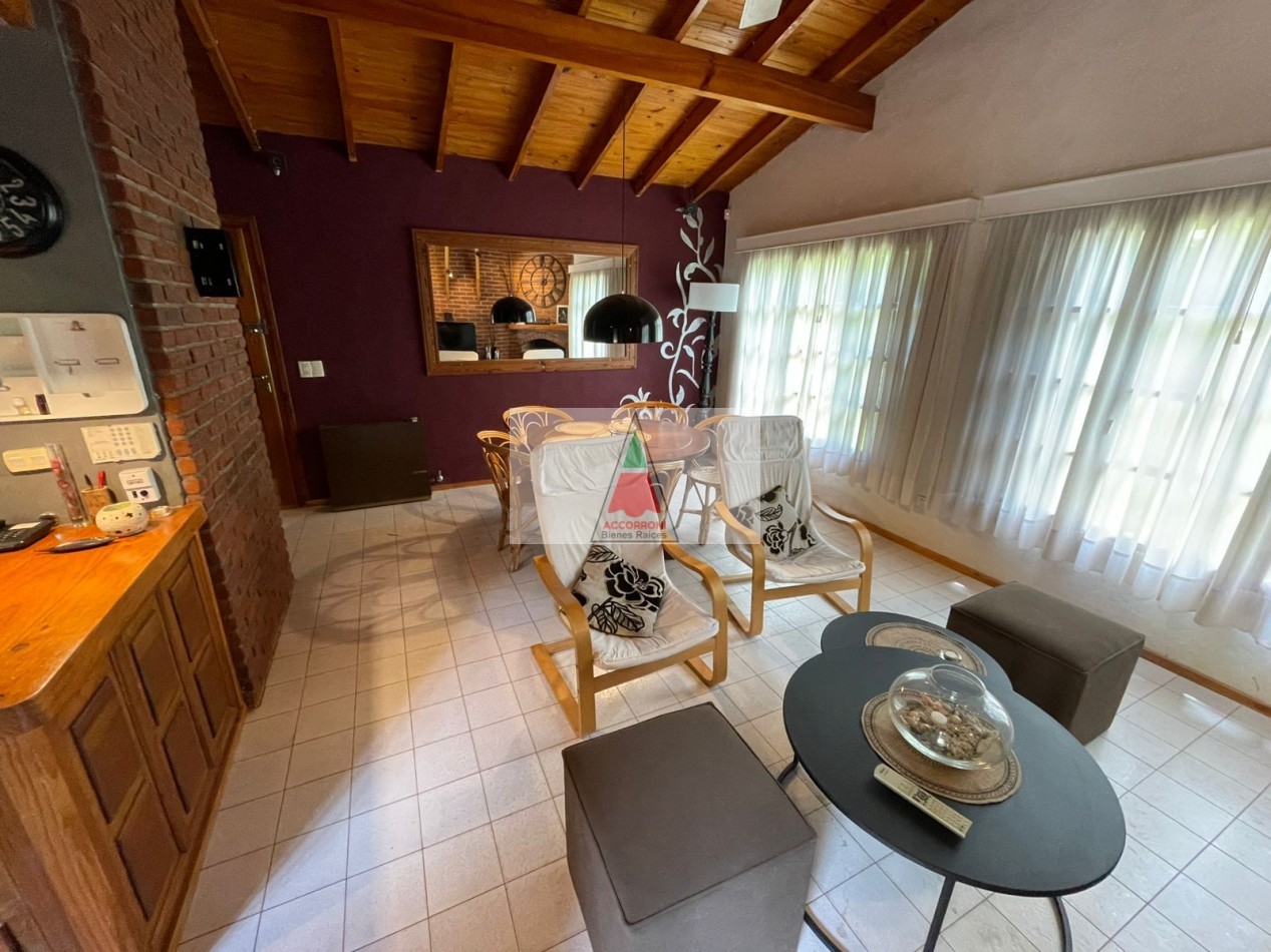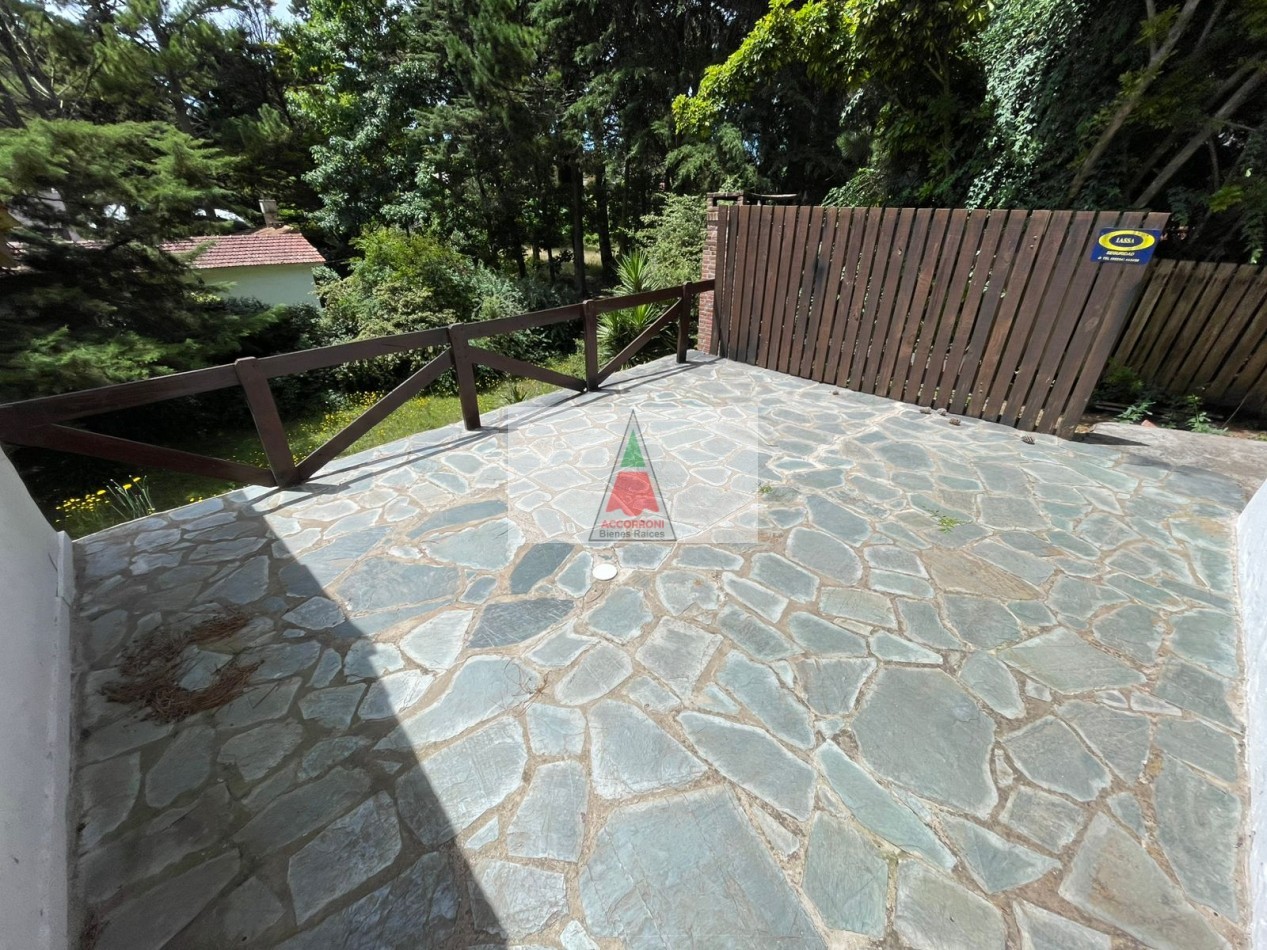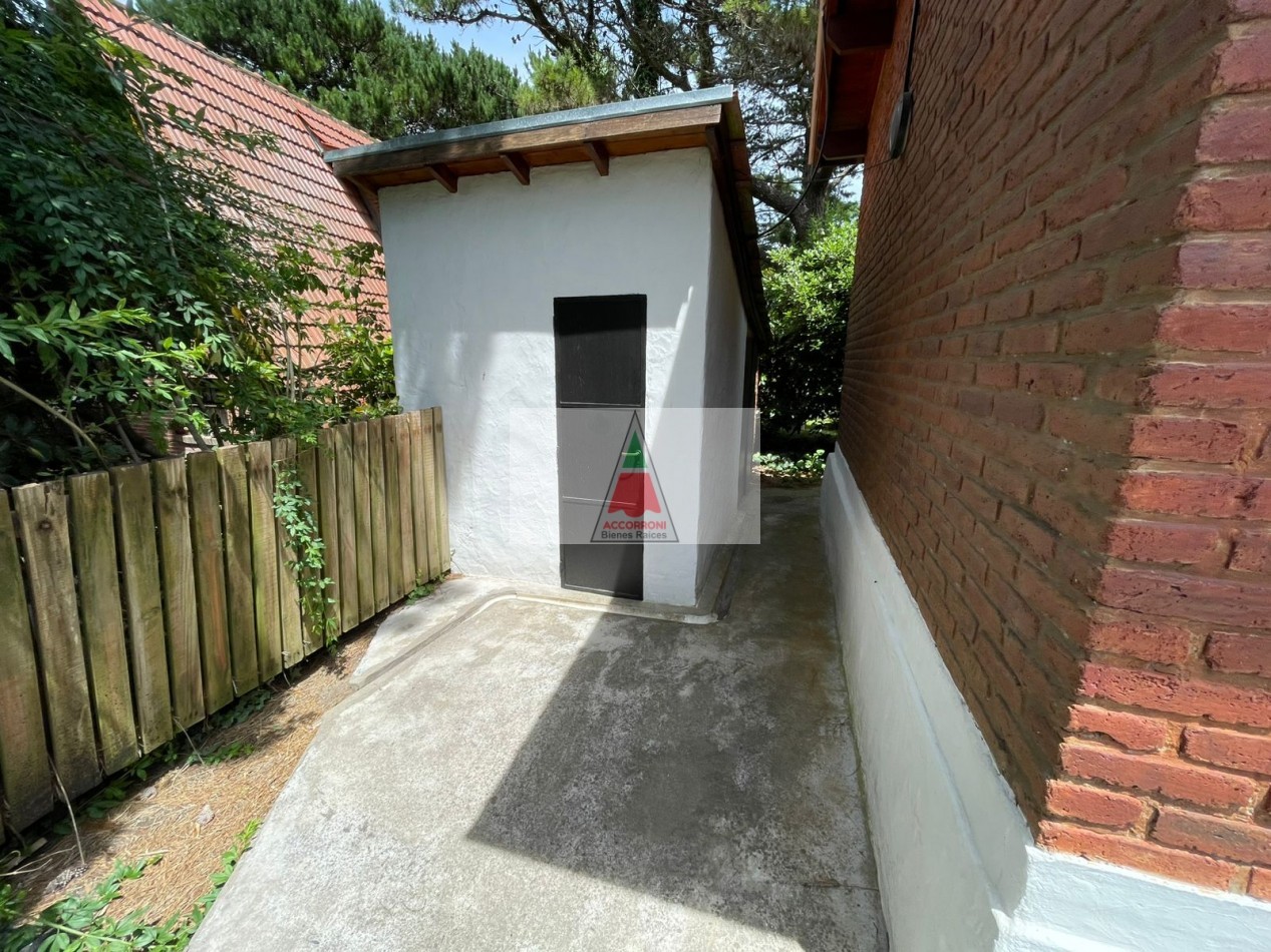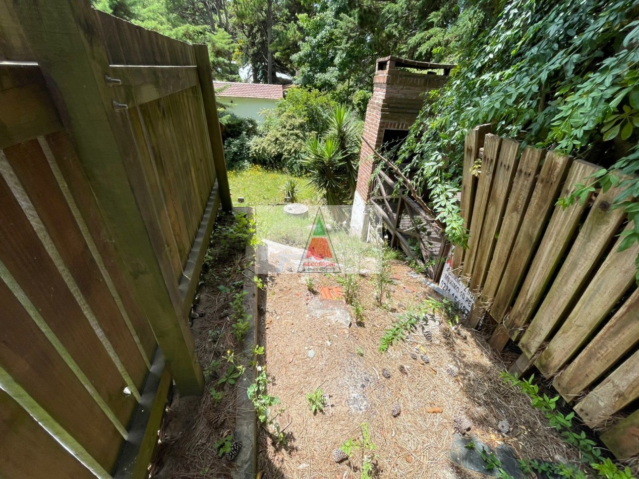 Excelente Chalet mas lote contiguo de 412 metros ubicado en la tranquila zona del pinar de Valeria del Mar, cuenta con estacionamiento semicubierto con parrilla y un baño en exterior. Distribuida totalmente en planta baja cuenta con un amplio living comedor con cocina semi integrada, un baño completo, habitación con dos camas mas habitación con cama matrimonial. Todos los servicios que la zona habilita.
