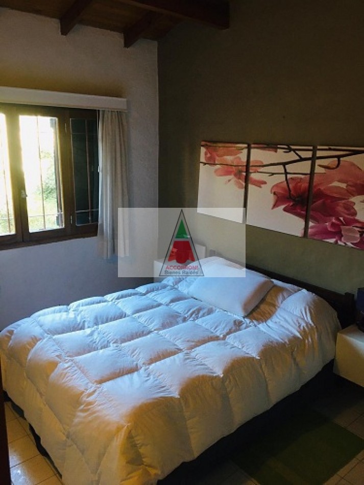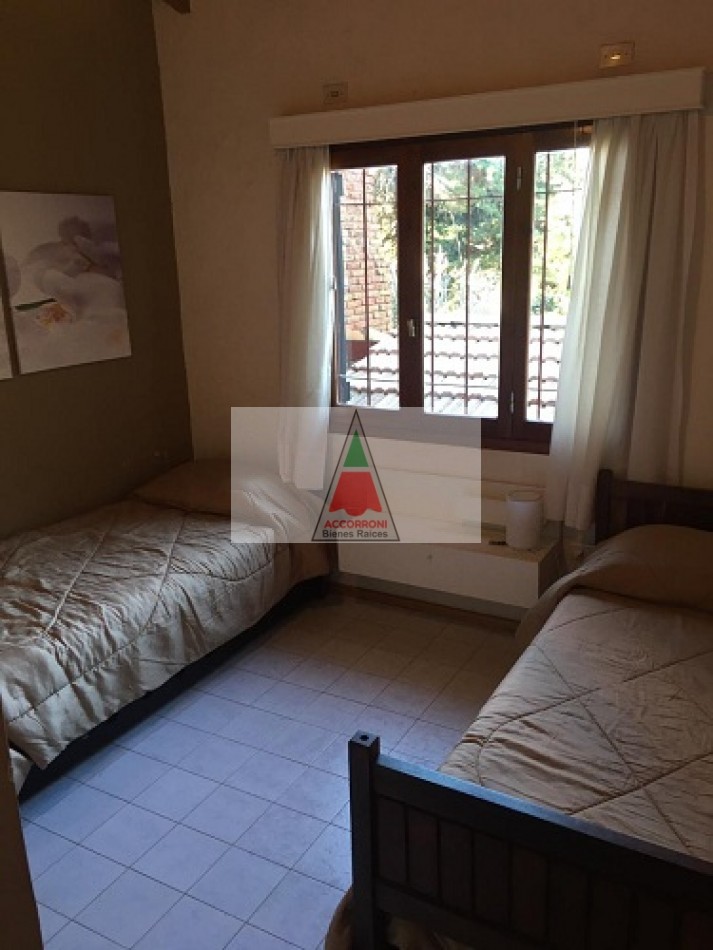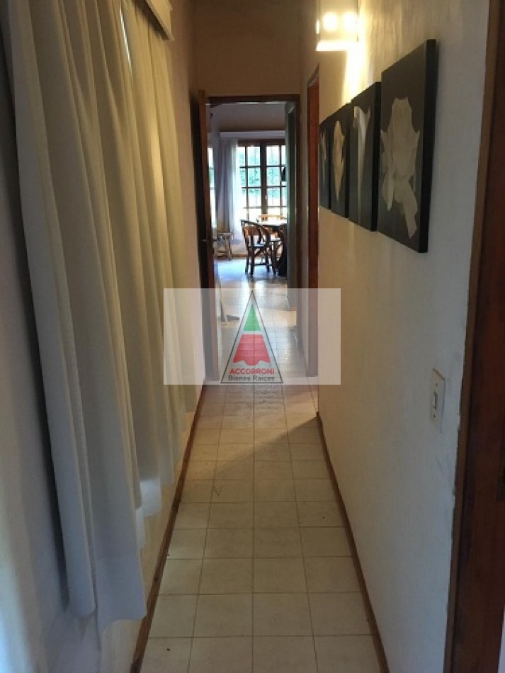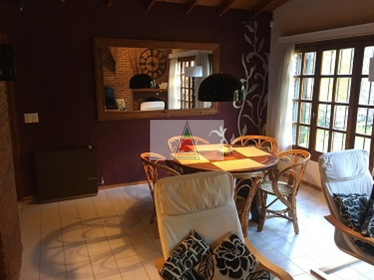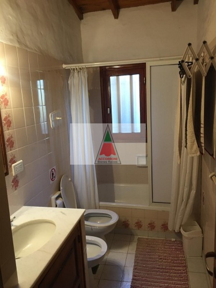 Chalet ubicado en la tranquila zona del pinar de Valeria del Mar, cuenta con estacionamiento semicubierto que tiene función de quincho con parrilla y un toilette mas un amplio parque para disfrutar. Distribuida totalmente en planta baja cuenta con un amplio y pintoresco living comedor con cocina semi integrada, un baño completo, habitación con dos camas simples mas habitación con cama matrimonial. Servicio de alarma, wifi y tv por DirecTv, 7 cuadras del mar, capacidad de 4 personas.