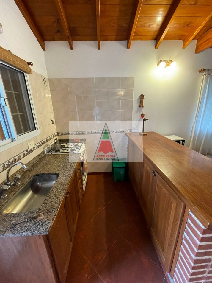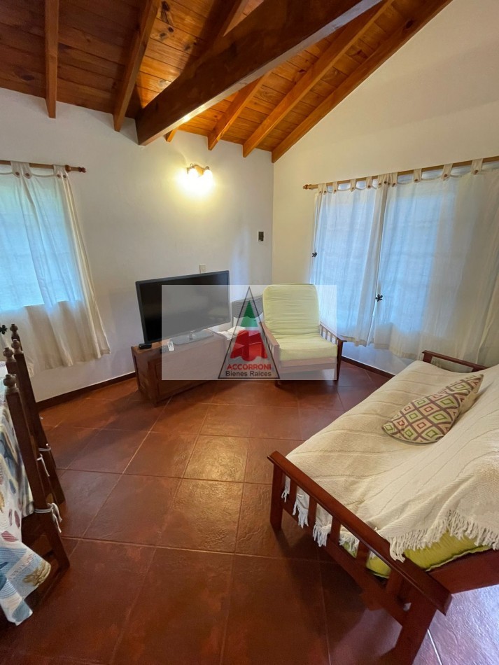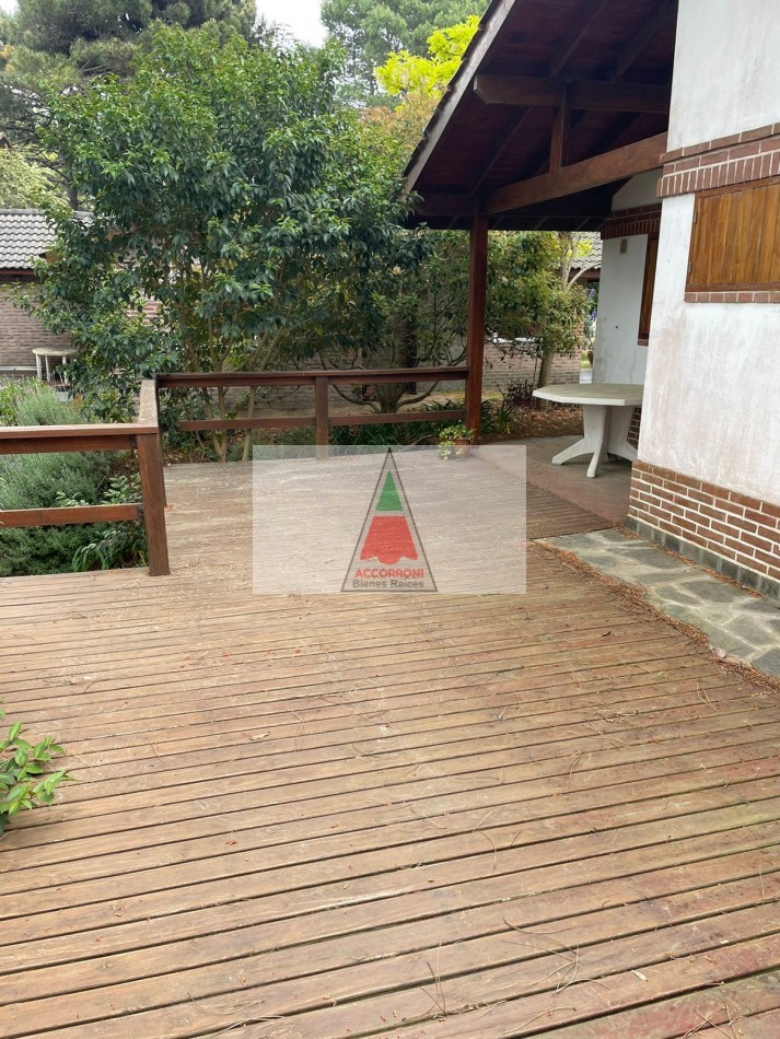 Agradable chalet con excelente parque y deck con parrilla, reposeras, mesas y sillas. Al ingreso encontramos un living comedor con sillones y tv. Cocina con barra desayunadora y lavadero. Dormitorio matrimonial, un baño completo y dormitorio con dos camas simples. Servicio de Internet y Tv, 4 cuadras del mar, capacidad de 4 personas.