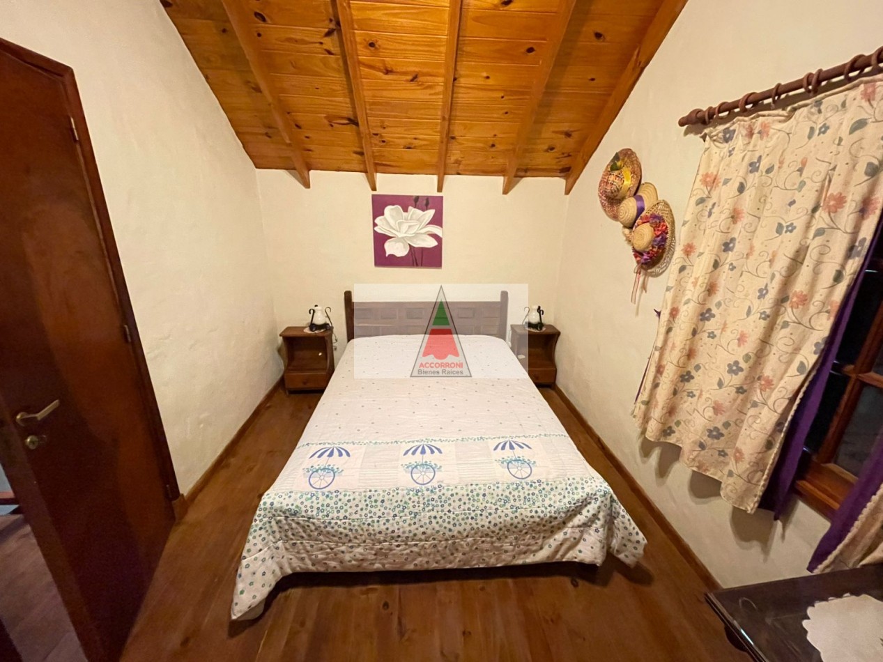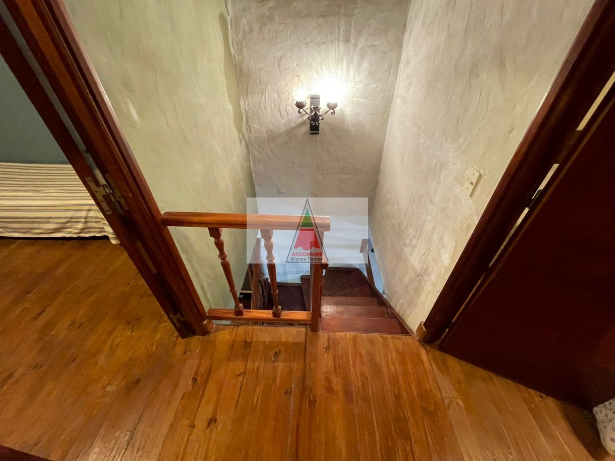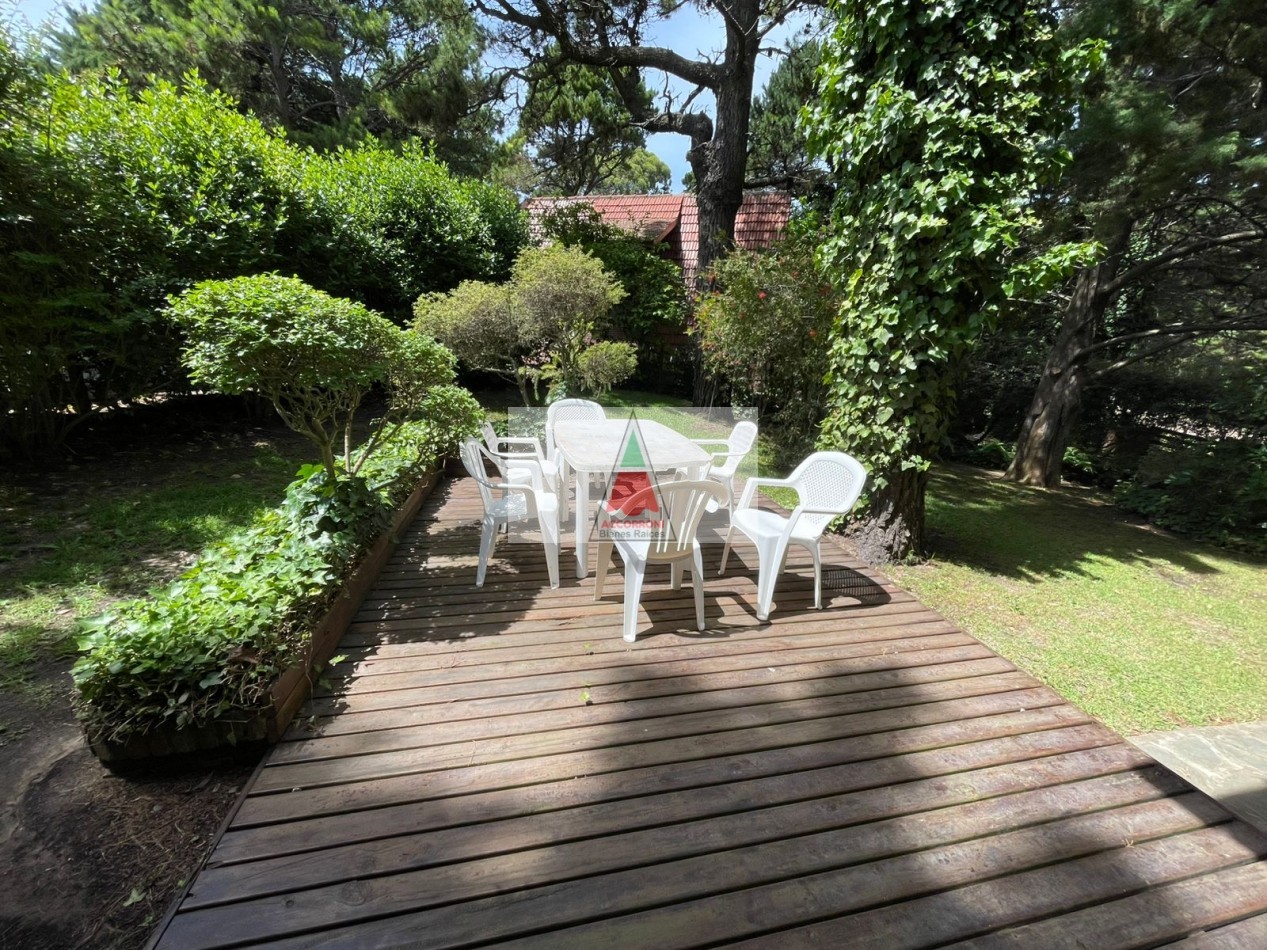 Agradable Chalet de 3 ambientes distribuido en dos plantas, ubicado en la zona del Pinar de Valeria del Mar, cuenta con un amplio parque, deck y quincho semicubierto con parrilla, mas estacionamiento semicubierto. Al ingreso amplio living comedor con cocina semi integrada mas un baño. En primer piso una habitación matrimonial, habitación con 3 camas simples, baño.