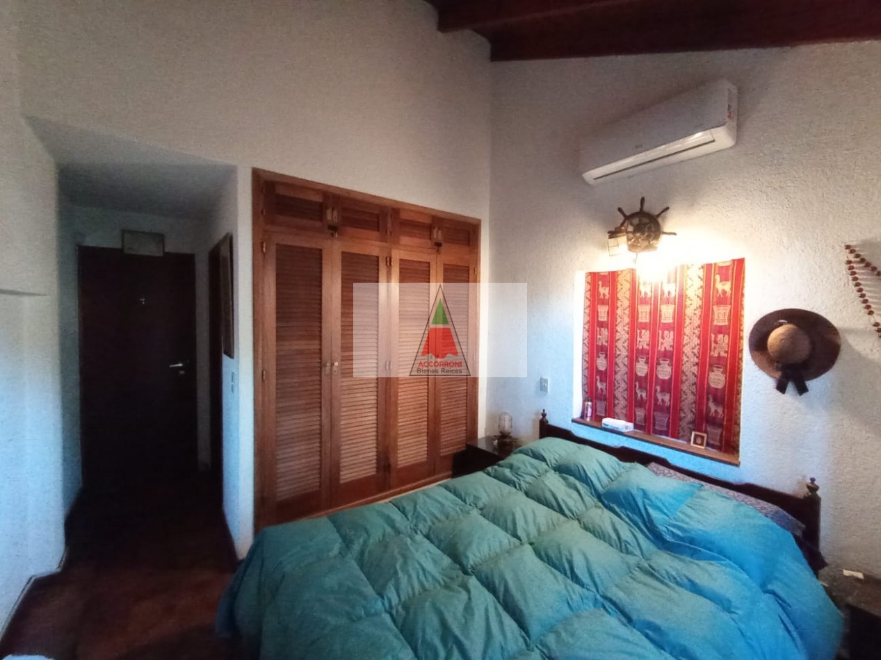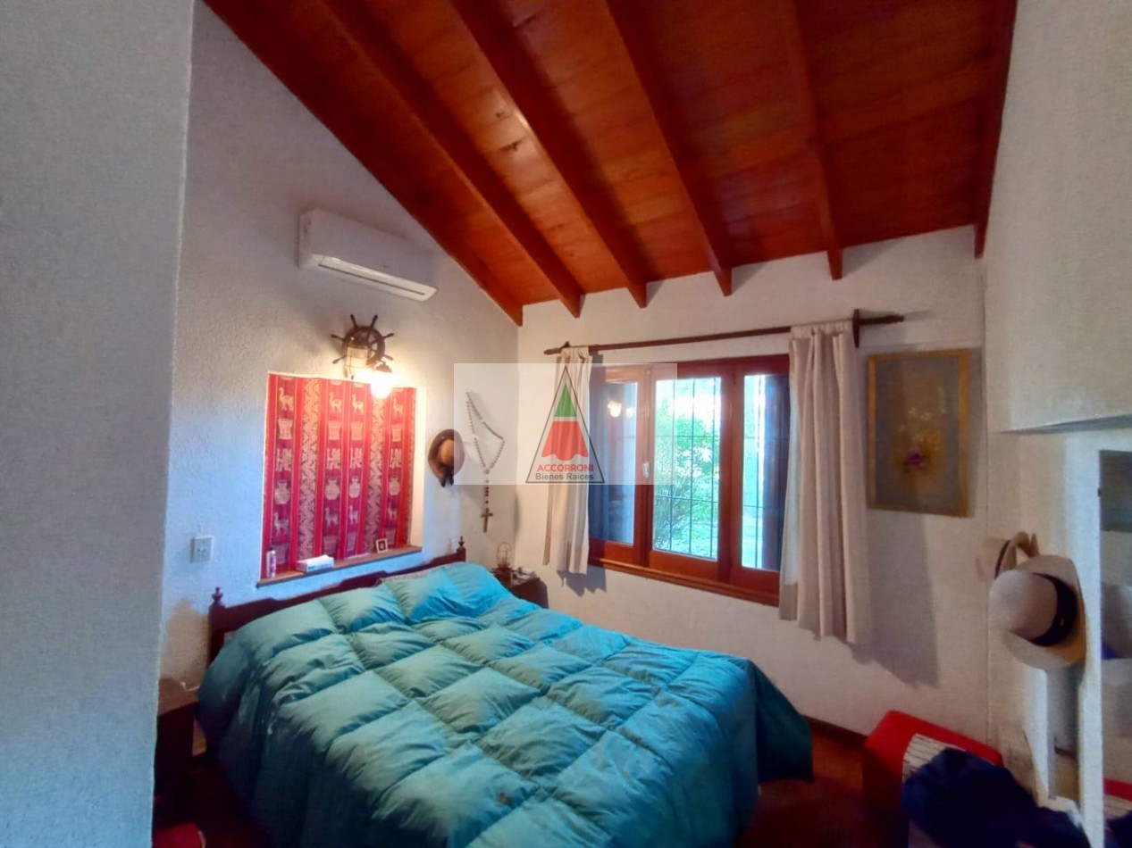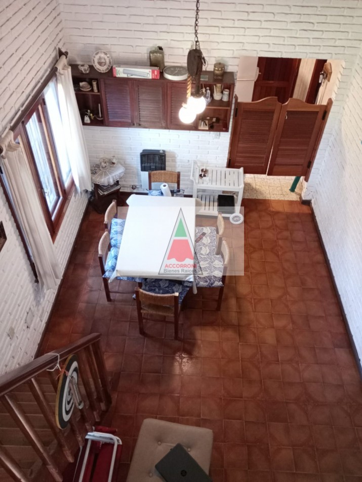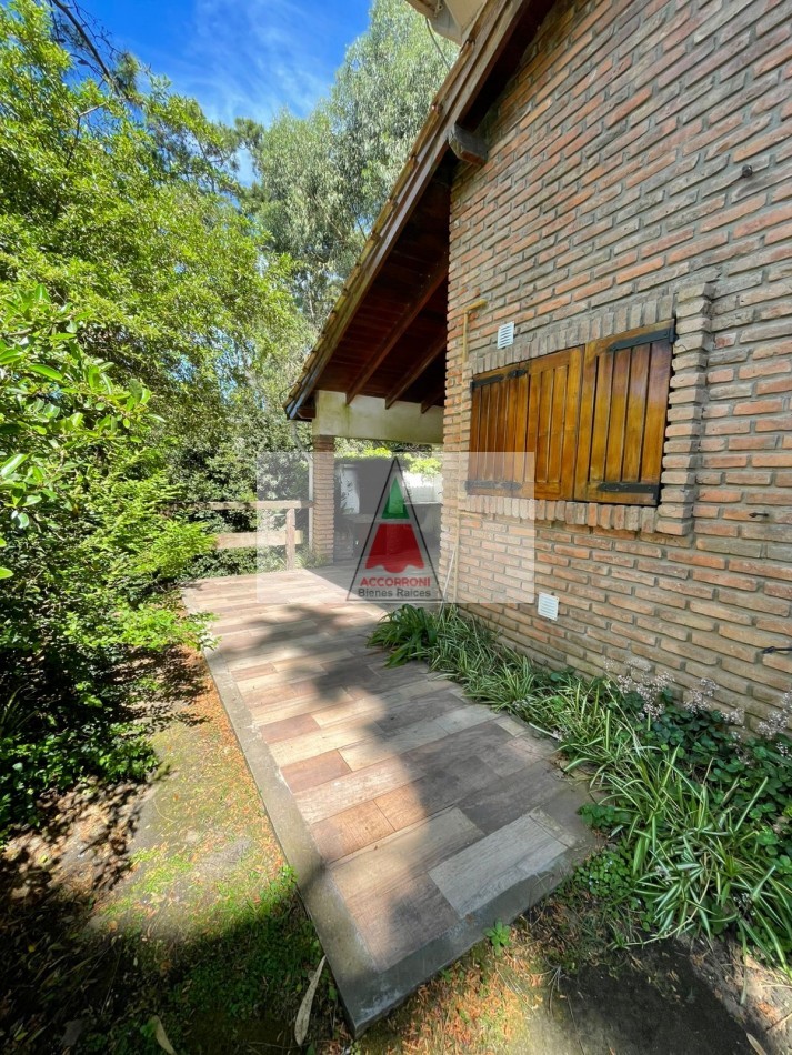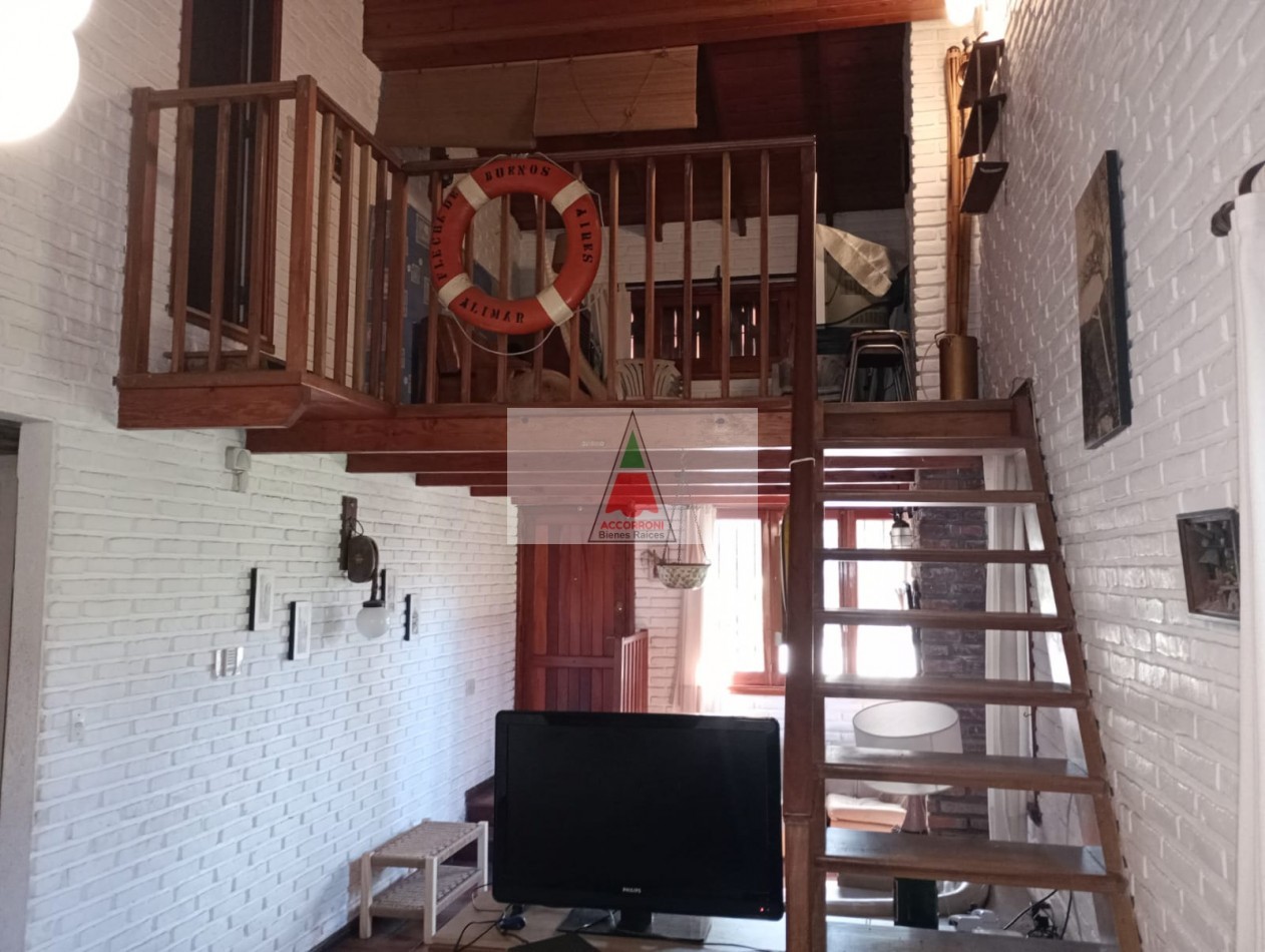 Agradable y espacioso chalet ubicado a 2 cuadras del mar y 3 del centro de Valeria del Mar. Distribuido en dos plantas cuenta con un amplio parque con arboles de la zona, quincho semicubierto con parrilla y espacio guarda coche semi-cubierto. En planta baja al ingresar nos encontramos con un amplio living con sillones y tv, comedor y cocina. Un dormitorio con 2 camas simples, un baño completo, dormitorio matrimonial y otro baño completo (Ambos nuevos). En planta alta un dormitorio con 2 camas simples mas baño. Servicio de alarma, wifi y tv. Capacidad 6 personas.