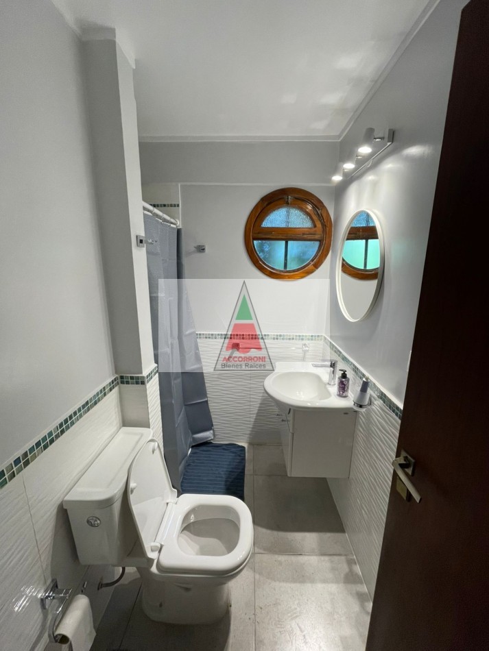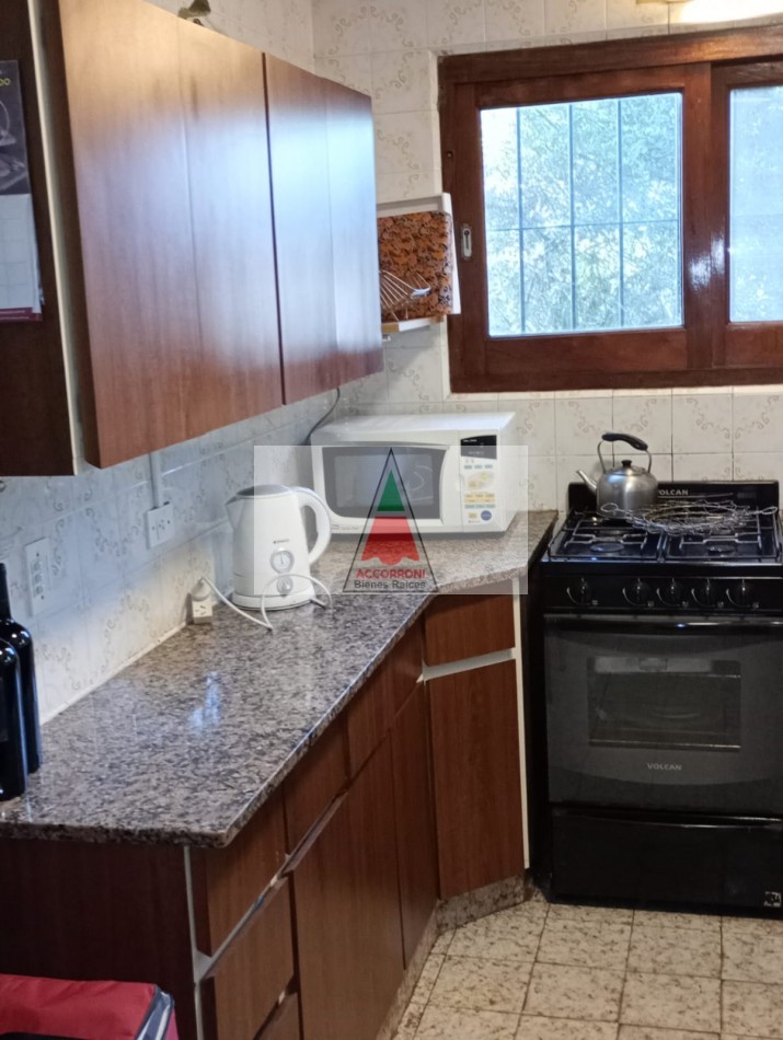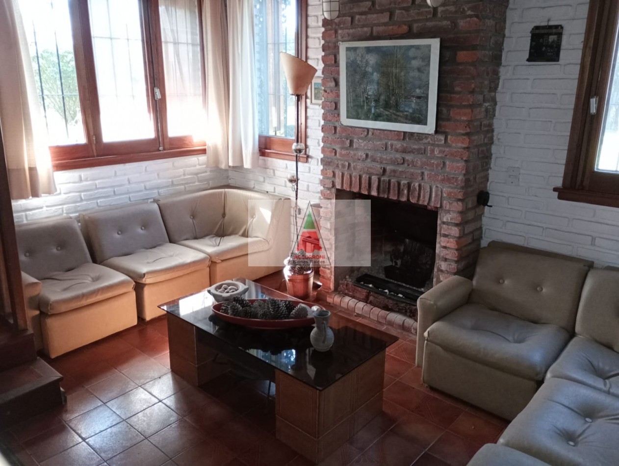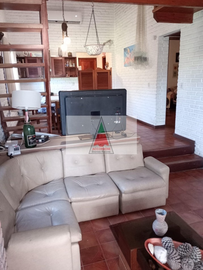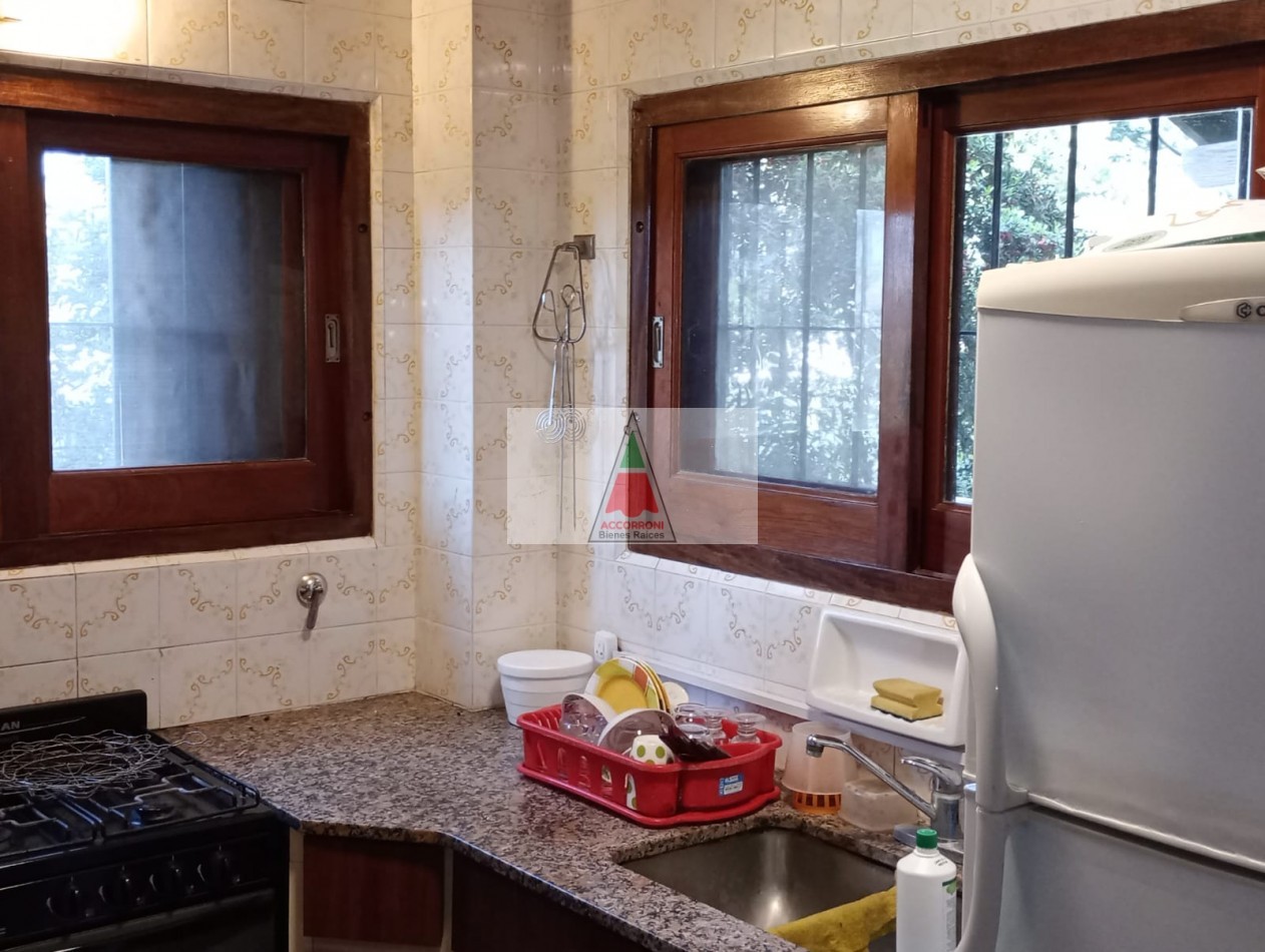 Agradable y espacioso chalet ubicado a 2 cuadras del mar y 3 del centro de Valeria del Mar. Distribuido en dos plantas cuenta con un amplio parque con arboles de la zona, quincho semicubierto con parrilla y espacio guarda coche semi-cubierto. En planta baja al ingresar nos encontramos con un amplio living con sillones y tv, comedor y cocina. Un dormitorio con 2 camas simples, un baño completo, dormitorio matrimonial y otro baño completo (Ambos nuevos). En planta alta un dormitorio con 2 camas simples mas baño. Servicio de alarma, wifi y tv. Capacidad 6 personas.