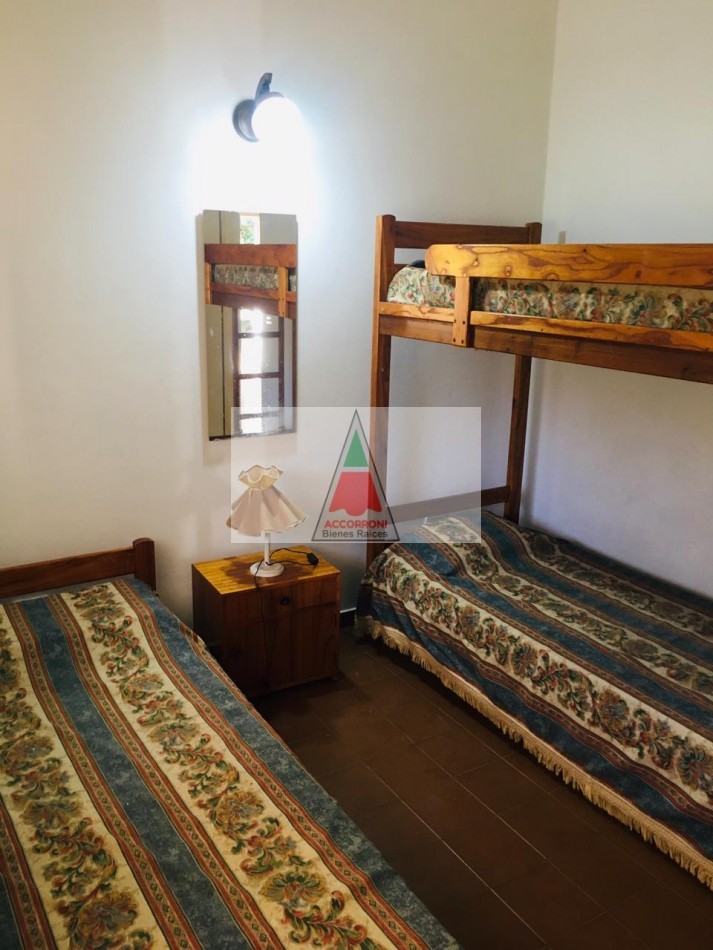 Chalet en excelente ubicación, distribuido totalmente en planta baja cuenta con un amplio living-comedor con cocina integrada, un baño, dormitorio con una cama cucheta y una simple y dormitorio matrimonial. En el exterior nos encontramos con el espacio guarda-coche (Descubierto) y un amplio parque con parrilla. Servicio de wifi, alarma y tv por DirecTv. Media cuadra del mar y 5 del centro de Valeria del Mar, capacidad de 5 personas.