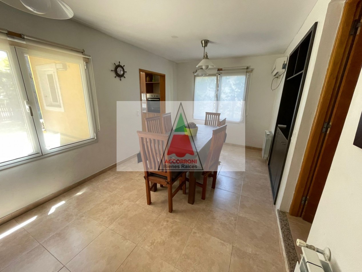 Excelente chalet con un amplio y agradable parque ubicado en una estratégica zona de Valeria del Mar, cerca del mar y principales comercios pero lejos del ruido del centro. Distribuida su totalidad en planta baja cuenta con living comedor con aire acondicionado, tv y vistas al parque mas una cocina totalmente equipada con todo lo necesario, ingresando por un pequeño pasillo nos encontramos con un baño completo, dormitorio principal matrimonial con tv y aire acondicionado y otro dormitorio con dos camas cuchetas y tv. En el exterior (Protegido todo el perímetro con cámaras de seguridad) encontramos un lavadero con lavaropas, amplio espacio guarda coche semicubierto, y una parrilla con espacio equipado con mesa y sillas de jardín. Servicio de alarma y wifi, cinco cuadras y media del balneario ``La Pergola´´ y cinco del centro de Valeria del Mar, capacidad de 6 personas.