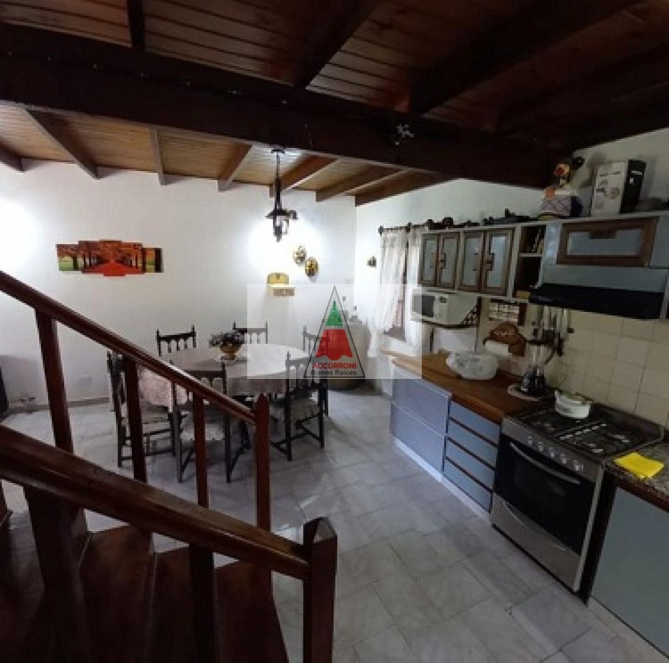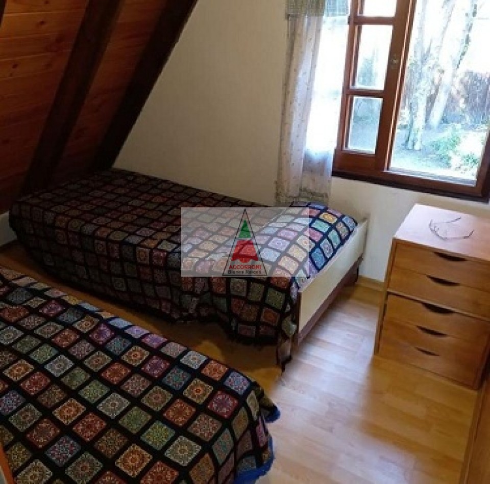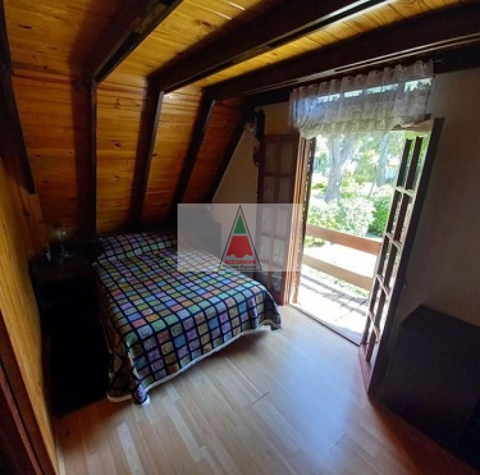 Chalet dividido en dos plantas con un amplio parque, parrilla semi-cubierta y entrada de auto. En planta baja un amplio living comedor, cocina totalmente equipada, baño completo y salida al patio/parrilla. En planta alta baño completo, dormitorio matrimonial con balcón, y dos dormitorios con dos camas simples cada uno. Servicio de wifi y Tv por DirecTv, seis cuadras del mar, capacidad 6 personas.