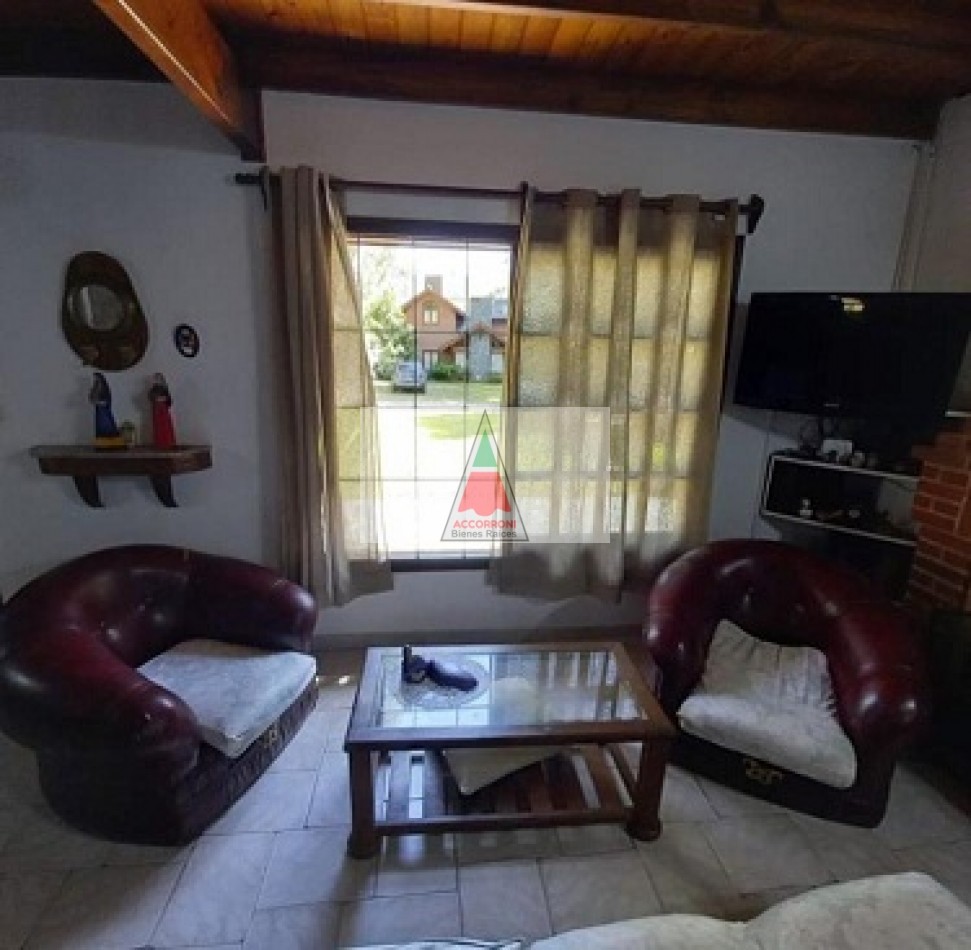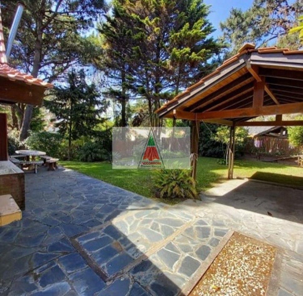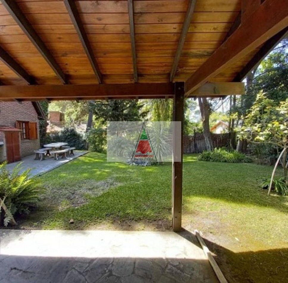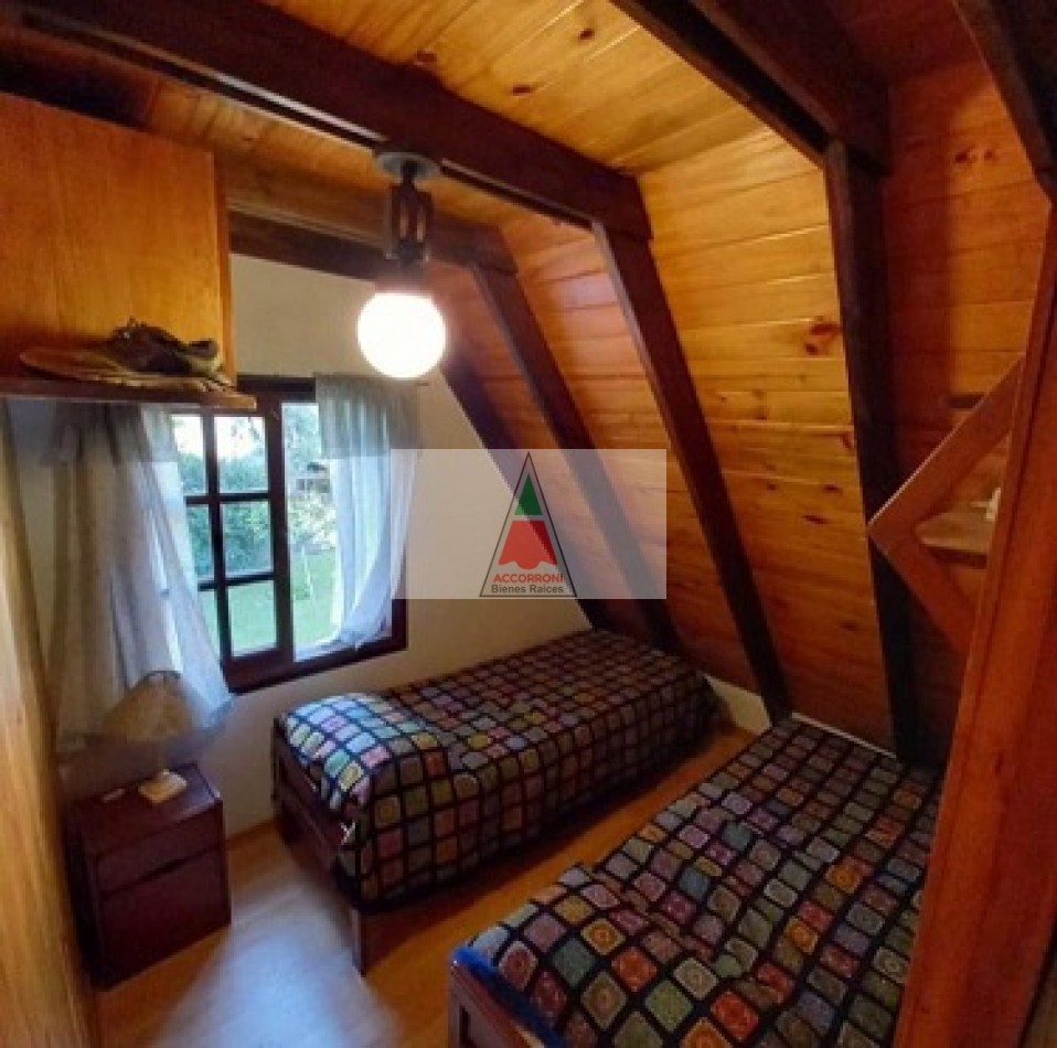 Chalet dividido en dos plantas con un amplio parque, parrilla semi-cubierta y entrada de auto. En planta baja un amplio living comedor, cocina totalmente equipada, baño completo y salida al patio/parrilla. En planta alta baño completo, dormitorio matrimonial con balcón, y dos dormitorios con dos camas simples cada uno. Servicio de wifi y Tv por DirecTv, seis cuadras del mar, capacidad 6 personas.