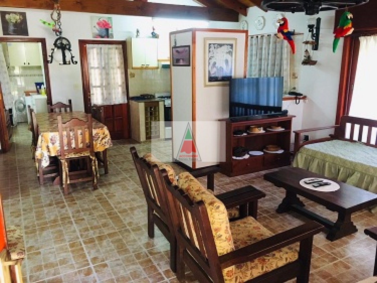 Chalet distribuido en una planta cuenta con living comedor con cocina semi-integrada separada por barra, lavadero cerrado con lavarropas automático, dormitorio matrimonial principal en suite, con bañera, dormitorio secundario matrimonial mas cama de una plaza y salida hacia un pequeño espacio semicubierto con mesa de jardín y quincho con parrilla totalmente cubierta. Servicio de wifi y tv por DirecTv. 4 cuadras del mar, capacidad 5 personas.
