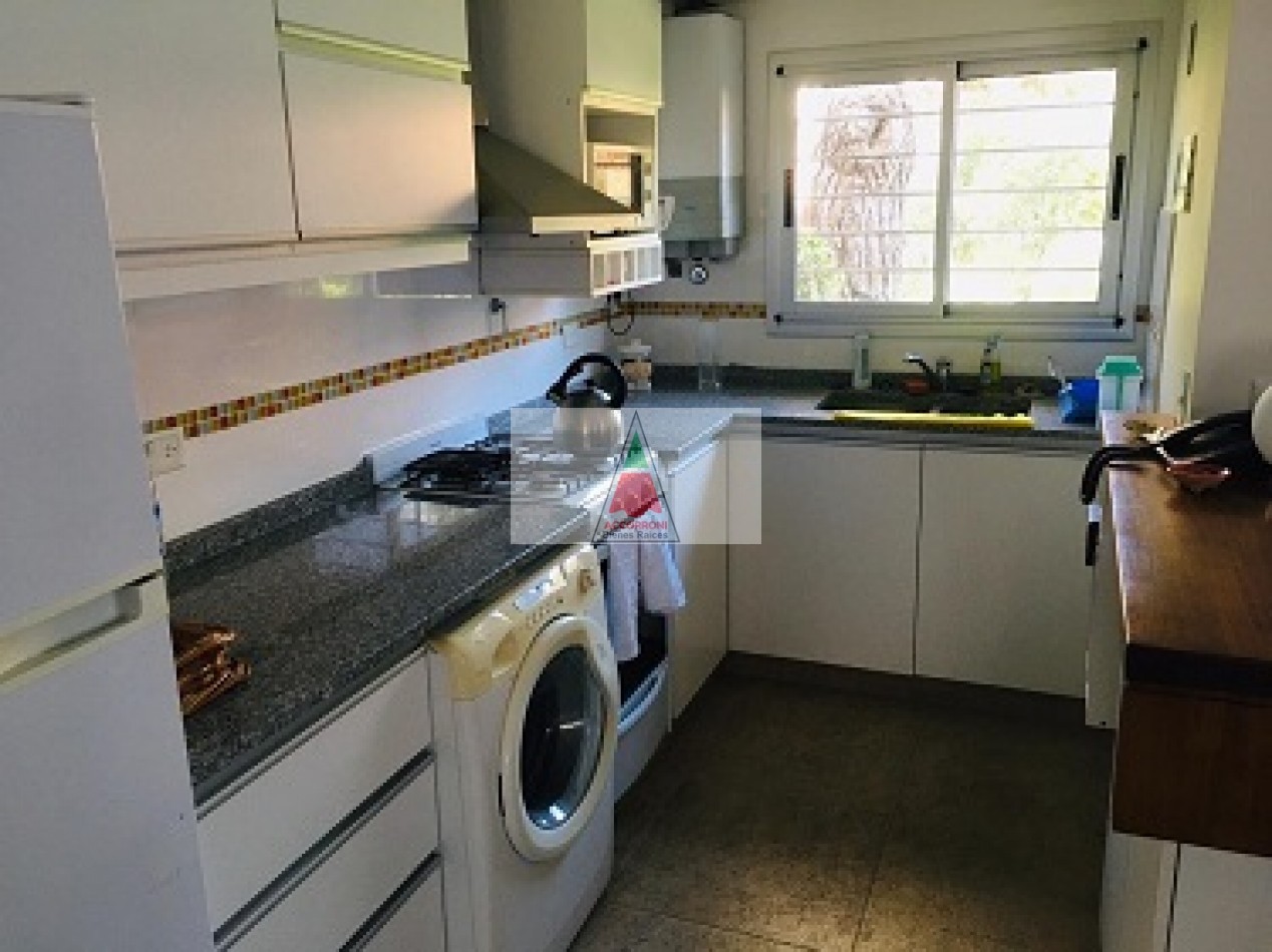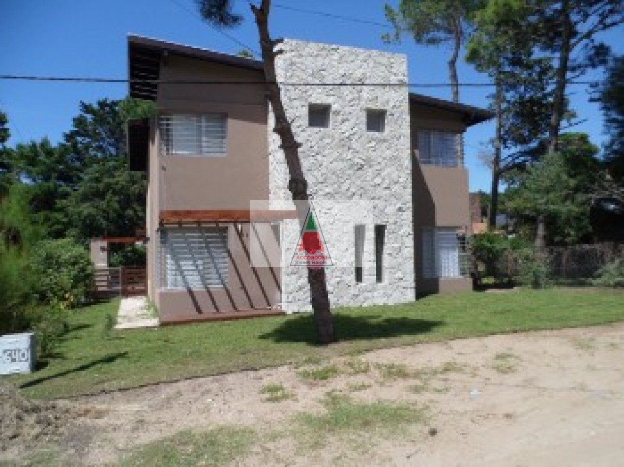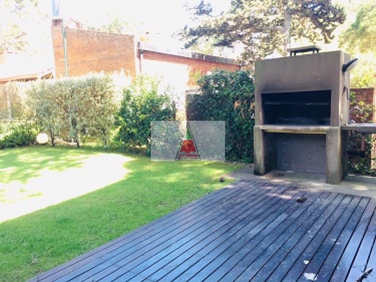 Excelente propiedad distribuida en dos amplias plantas dispone de deck con parrilla y parque propio. En planta baja nos encontramos con un muy amplio living con sillones, tv y un toilette, comedor con cocina integrada y salida hacia el parque. En planta alta nos encontramos con dos habitaciones (Una de ellas en suite), un baño completo y un amplio espacio con 1 cama simple. Lavaropas, servicio de wifi, alarma y tv, capacidad de 5 personas.