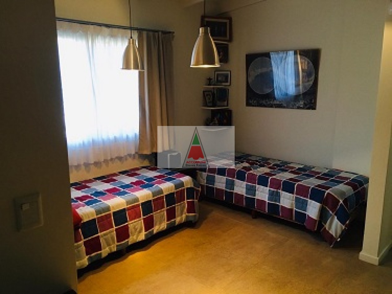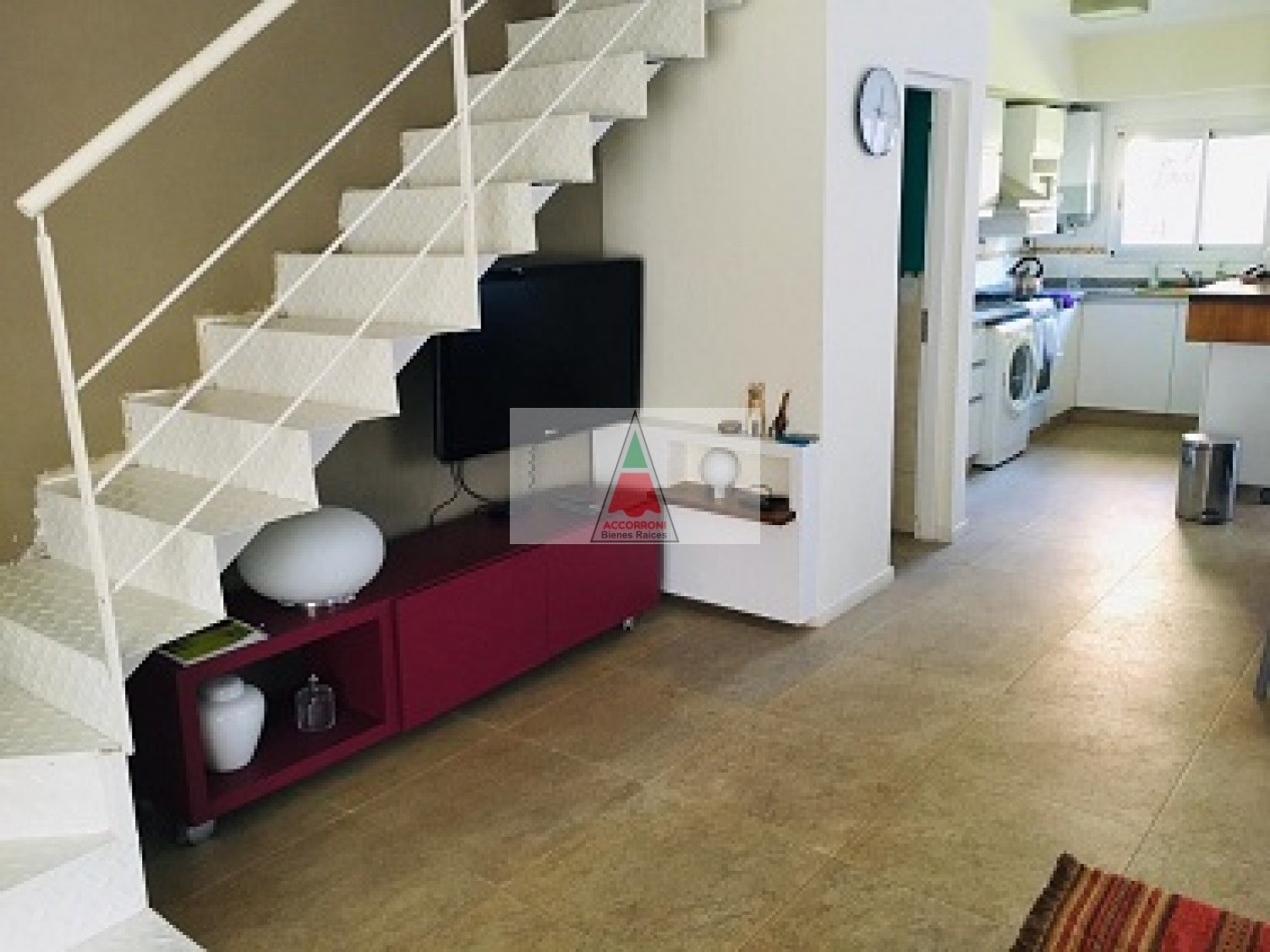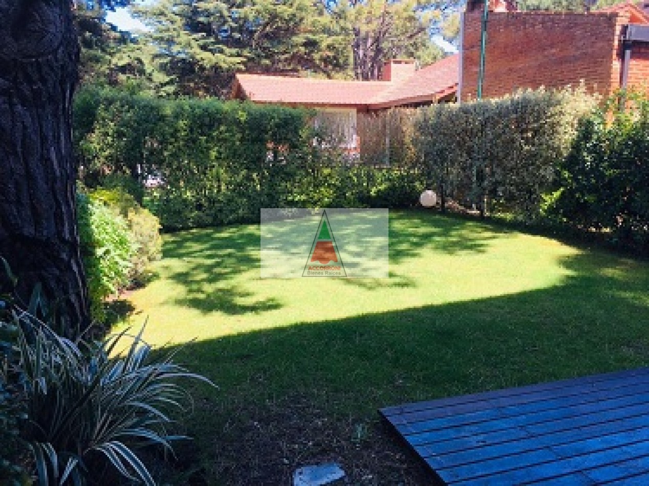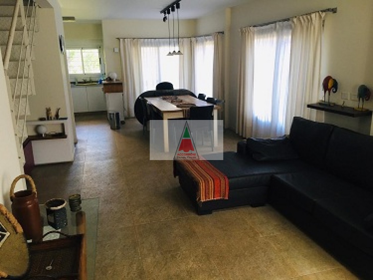 Excelente propiedad distribuida en dos amplias plantas dispone de deck con parrilla y parque propio. En planta baja nos encontramos con un muy amplio living con sillones, tv y un toilette, comedor con cocina integrada y salida hacia el parque. En planta alta nos encontramos con dos habitaciones (Una de ellas en suite), un baño completo y un amplio espacio con 1 cama simple. Lavaropas, servicio de wifi, alarma y tv, capacidad de 5 personas.