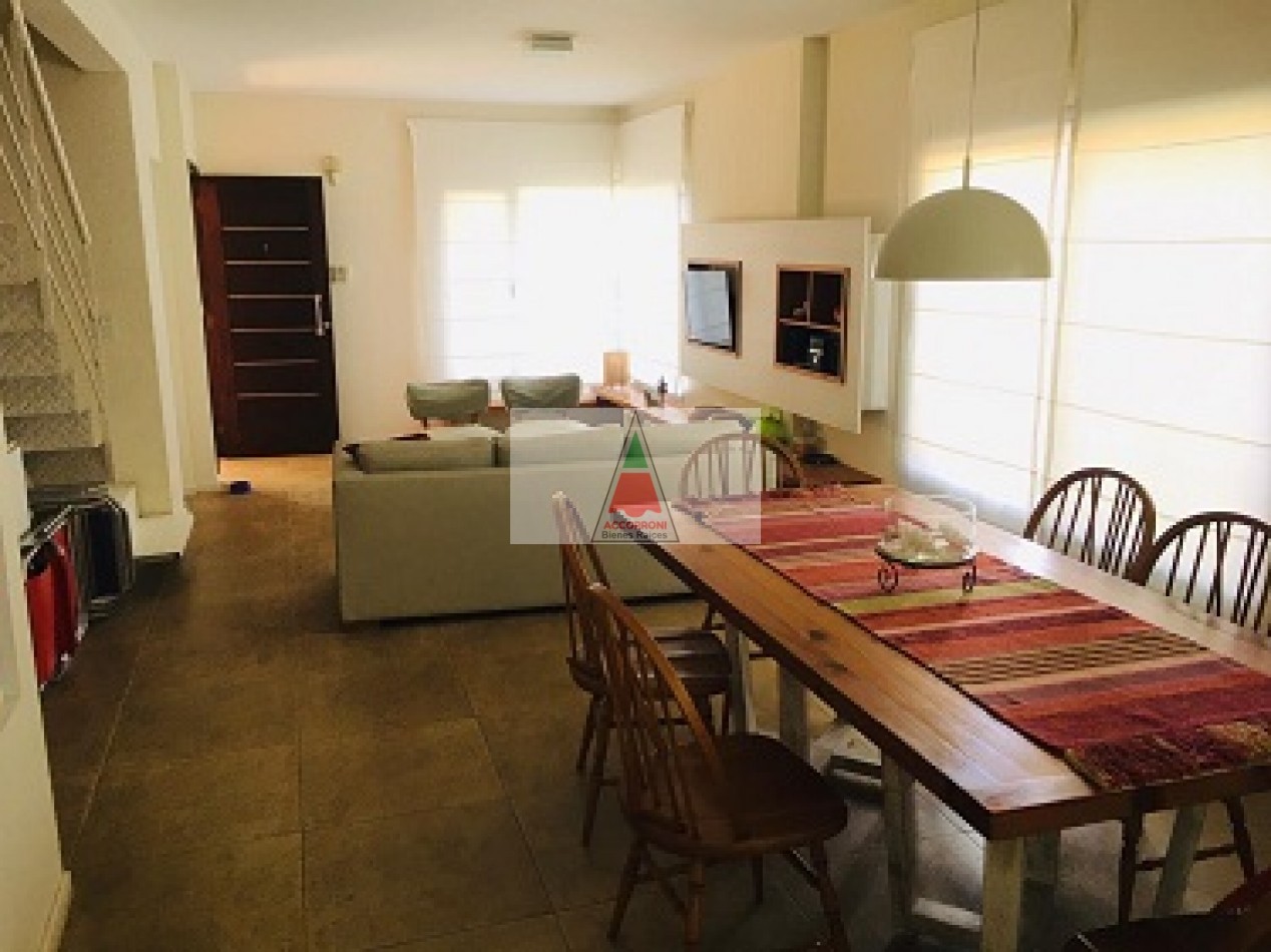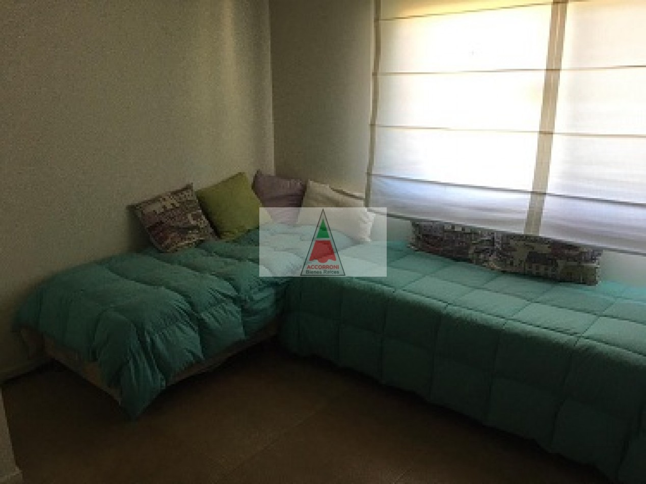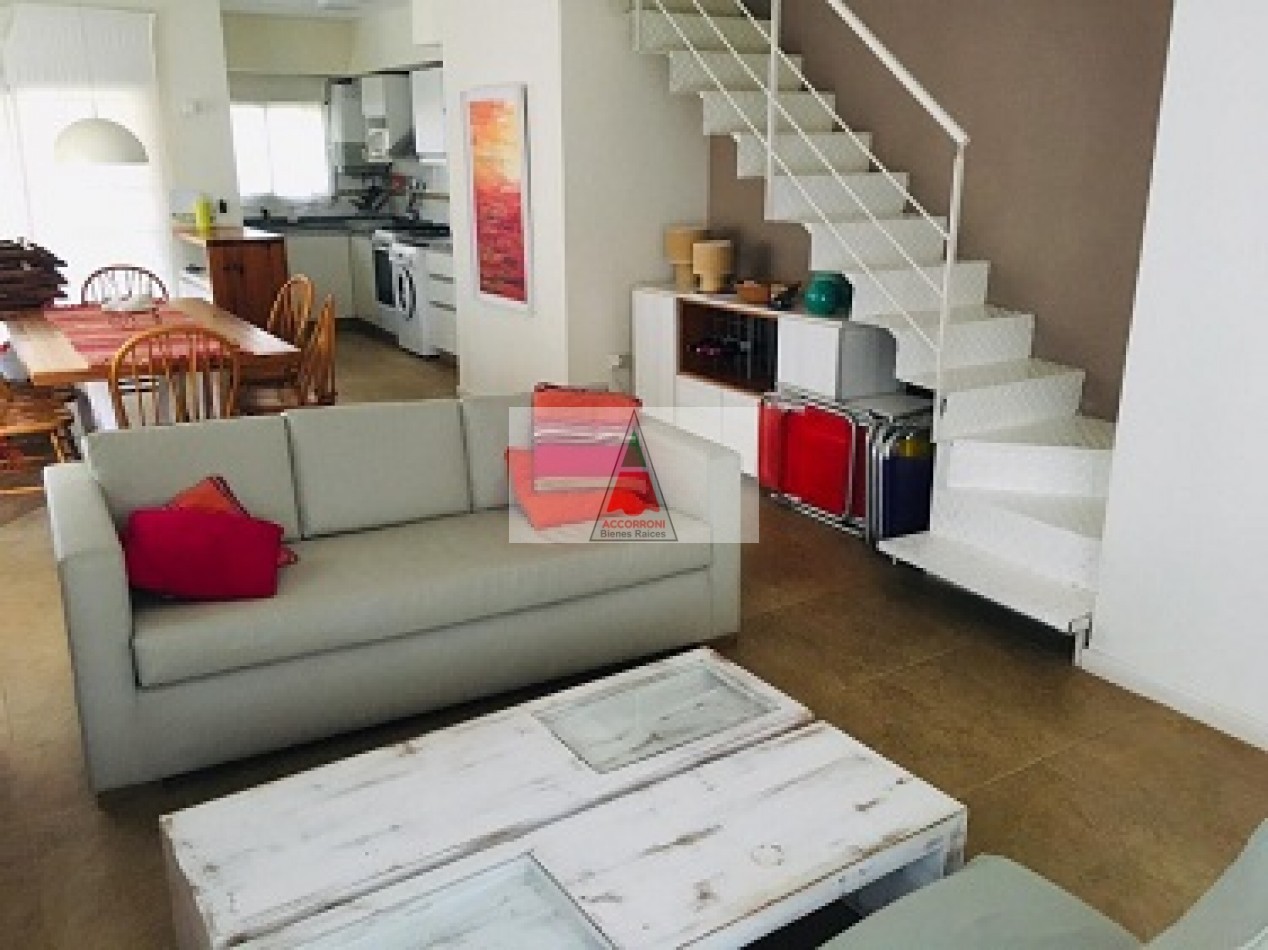 Excelente propiedad distribuida en dos amplias plantas dispone de deck con parrilla y parque propio. En planta baja nos encontramos con un muy amplio living con sillones, tv y un toilette, comedor con cocina integrada y salida hacia el parque. En planta alta nos encontramos con dos habitaciones (Una de ellas en suite), un baño completo y un amplio espacio con 2 camas simples. Lavaropas, servicio de wifi, alarma y tv, capacidad de 6 personas.