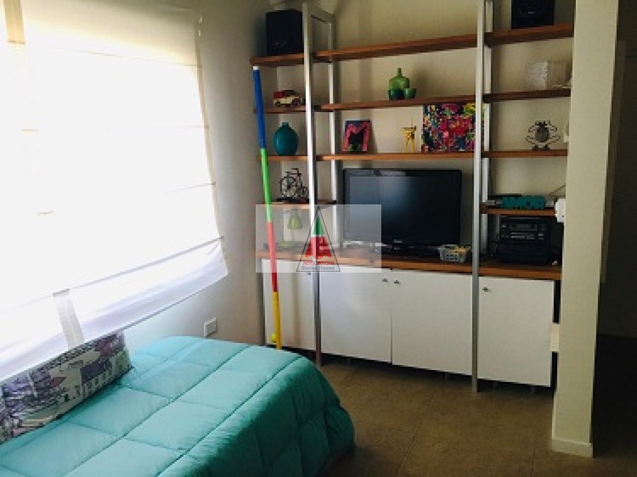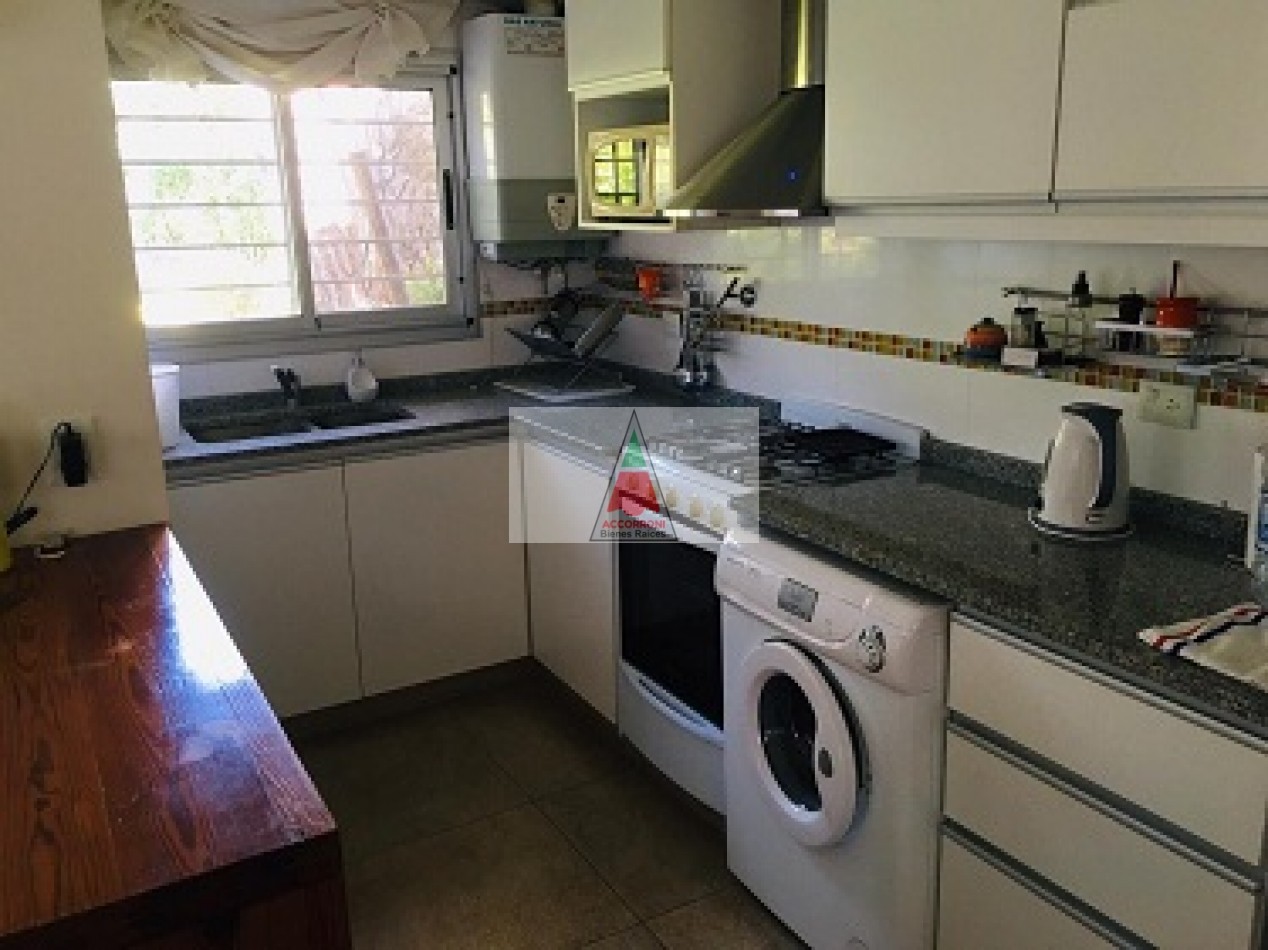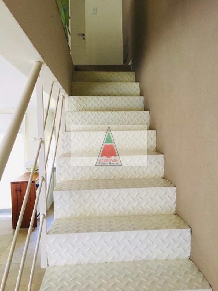 Excelente propiedad distribuida en dos amplias plantas dispone de deck con parrilla y parque propio. En planta baja nos encontramos con un muy amplio living con sillones, tv y un toilette, comedor con cocina integrada y salida hacia el parque. En planta alta nos encontramos con dos habitaciones (Una de ellas en suite), un baño completo y un amplio espacio con 2 camas simples. Lavaropas, servicio de wifi, alarma y tv, capacidad de 6 personas.