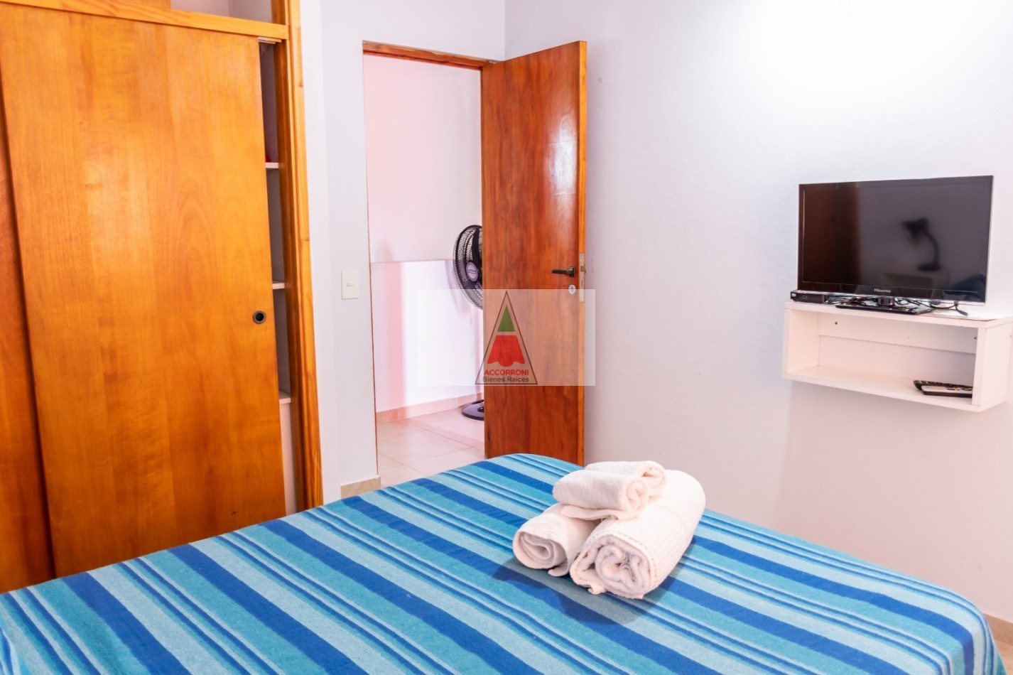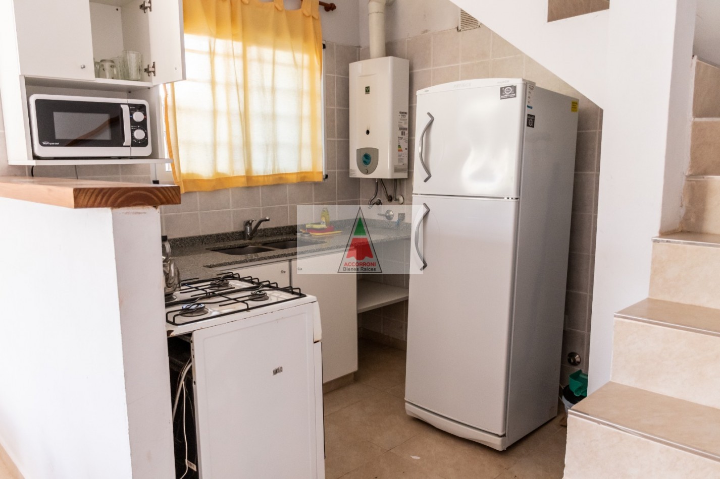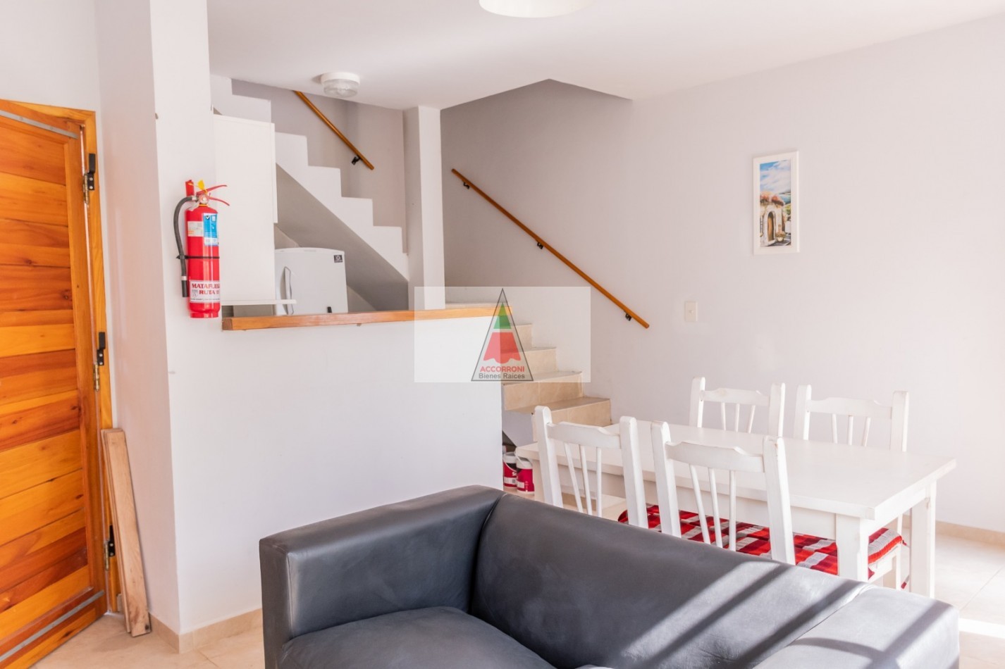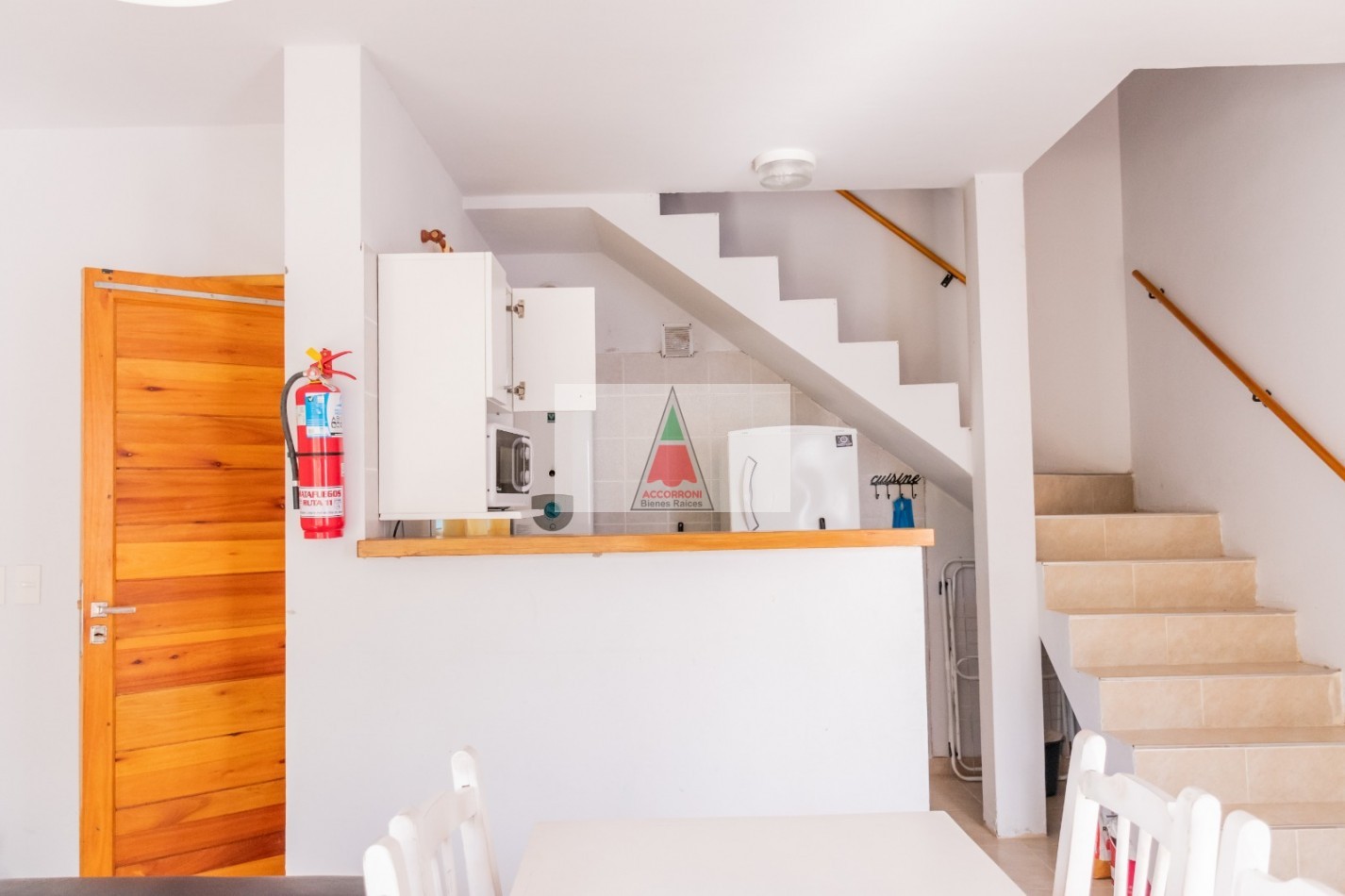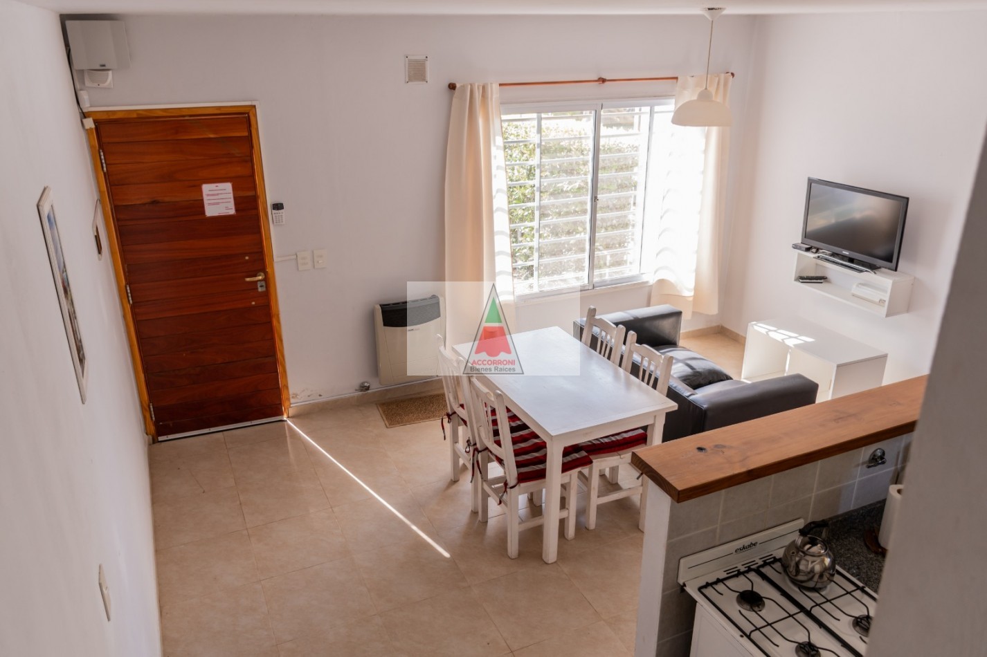 Dúplex de 3 ambientes en excelente ubicación, distribuido en dos plantas. En planta baja amplio living comedor separado con barra desayunadora sillón, tv, y salida a parque con parrilla privada, en primer piso habitación matrimonial con tv, habitación con cama cucheta y baño completo. Servicio de Wi-fi, alarma, tv por DirecTv y recambio de ropa blanca y limpieza cada 3 días. 2 cuadras del mar, 3 del centro de Valeria del Mar, capacidad 4 personas. Aceptamos mascotas.