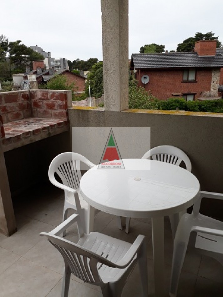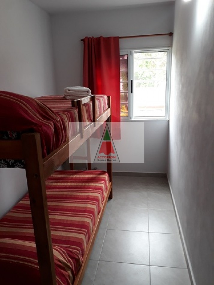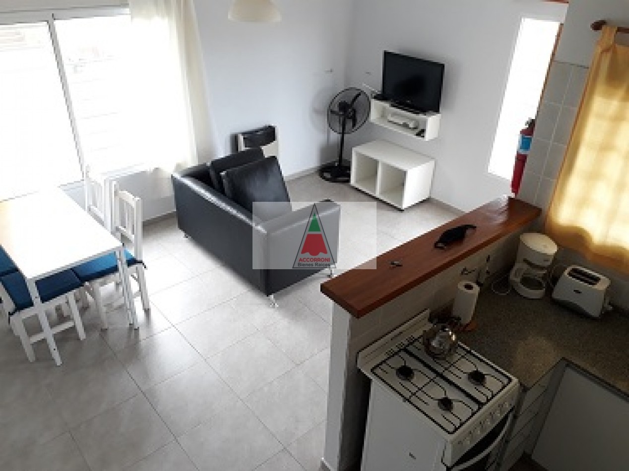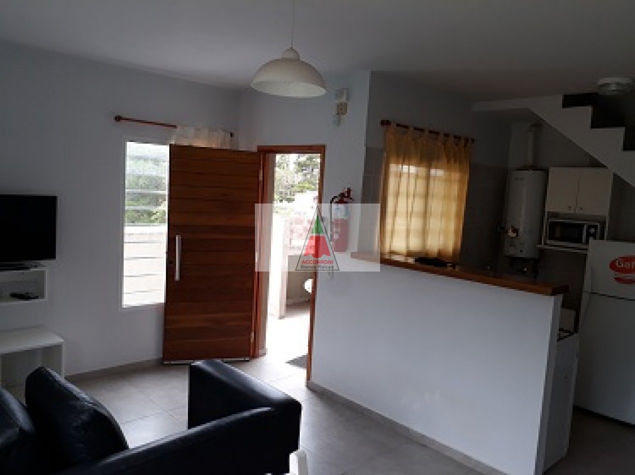 Dúplex de 3 ambientes en primer piso por escalera, excelente ubicación, distribuido en dos plantas. En planta baja amplio living comedor separado con barra desayunadora sillón, tv, y salida a pequeña terraza con parrilla privada, en primer piso habitación matrimonial con tv, habitación con cama cucheta y baño completo. Servicio de Wi-fi, alarma, tv por DirecTv y recambio de ropa blanca y limpieza cada 3 días. 2 cuadras del mar, 3 del centro de Valeria del Mar, capacidad 4 personas. Aceptamos mascotas.