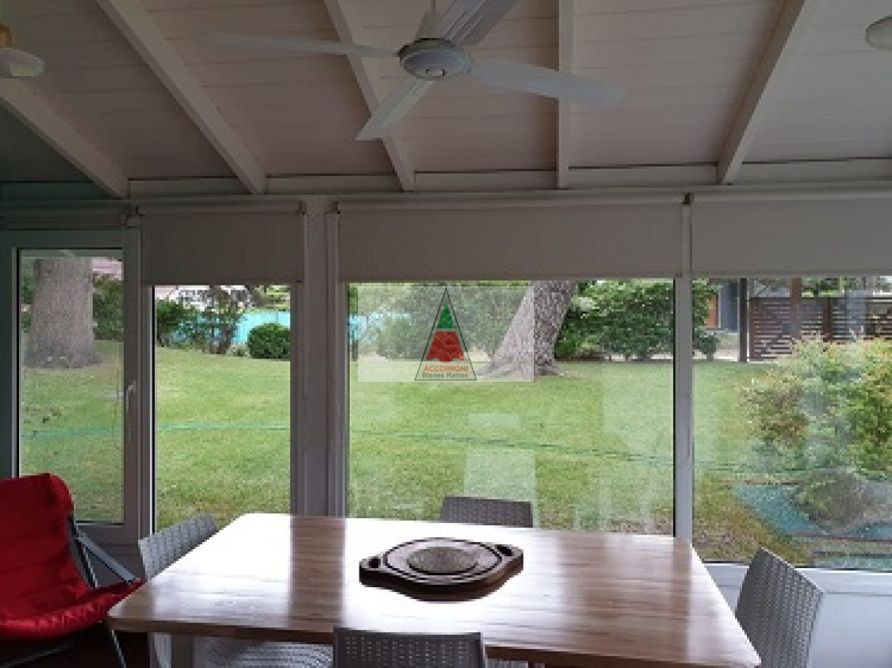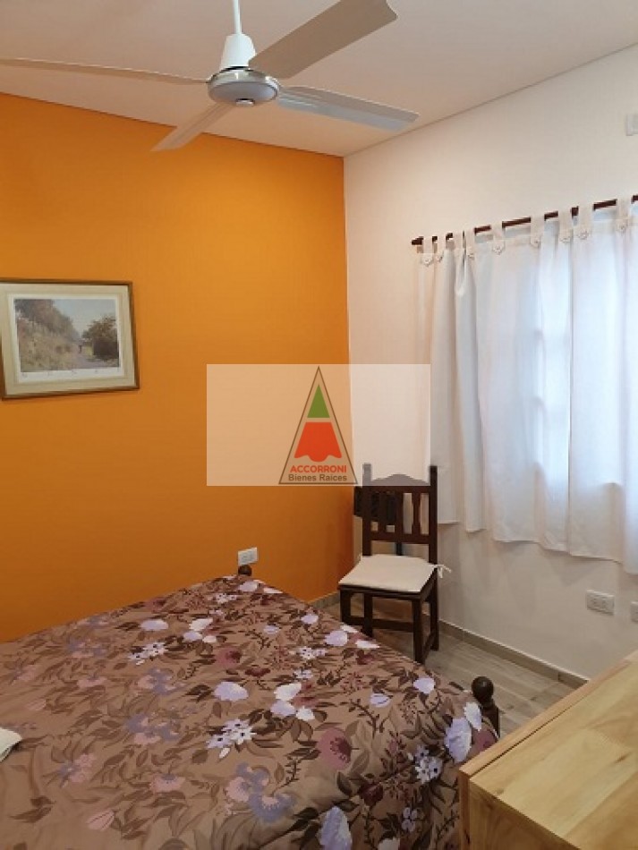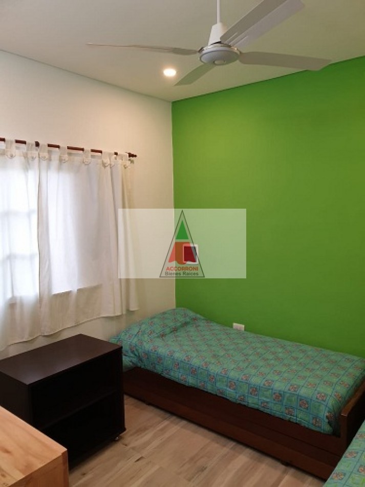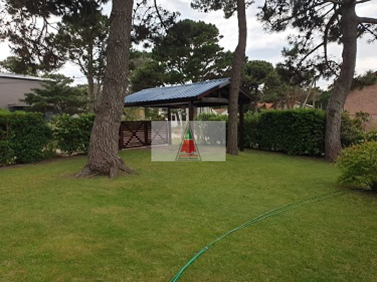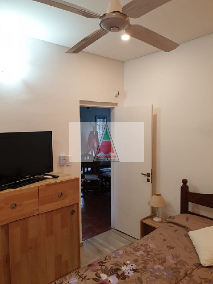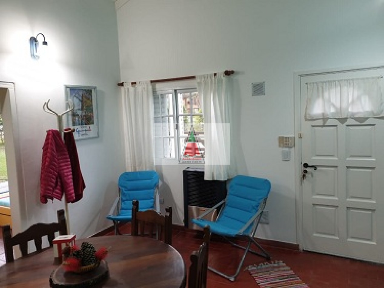 Excelente chalet en estratégica zona a 2 cuadras del mar y 7 del centro de Valeria del Mar. Cuenta con un amplio parque con estacionamiento mas quincho (Ambos semi-cubiertos). Al ingresar encontramos un amplio comedor con cocina integrada, amplio living con sofá cama y tv, dos baños completos, dormitorio con dos camas simples y dormitorio matrimonial. Aire acondicionado en dormitorio matrimonial y living, lavarropas, servicio de wifi, alarma y tv por DirecTv.