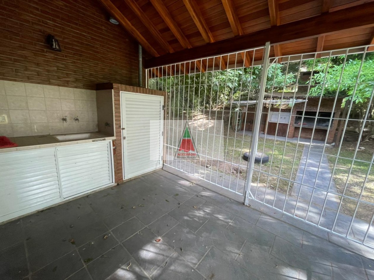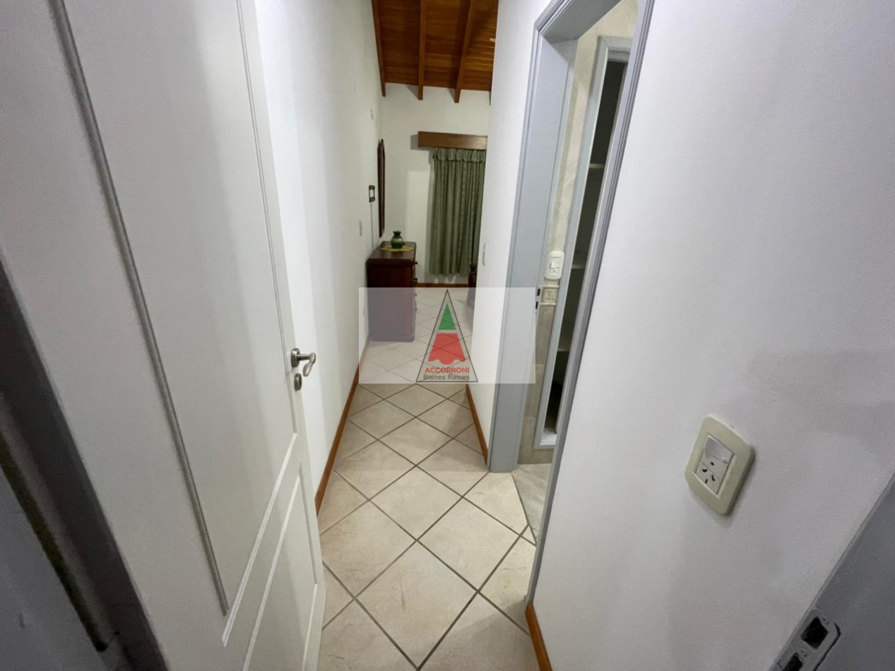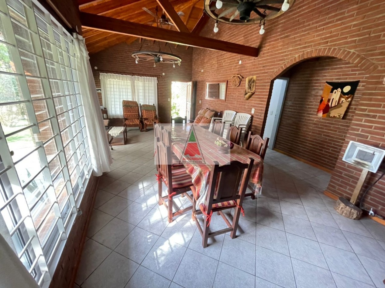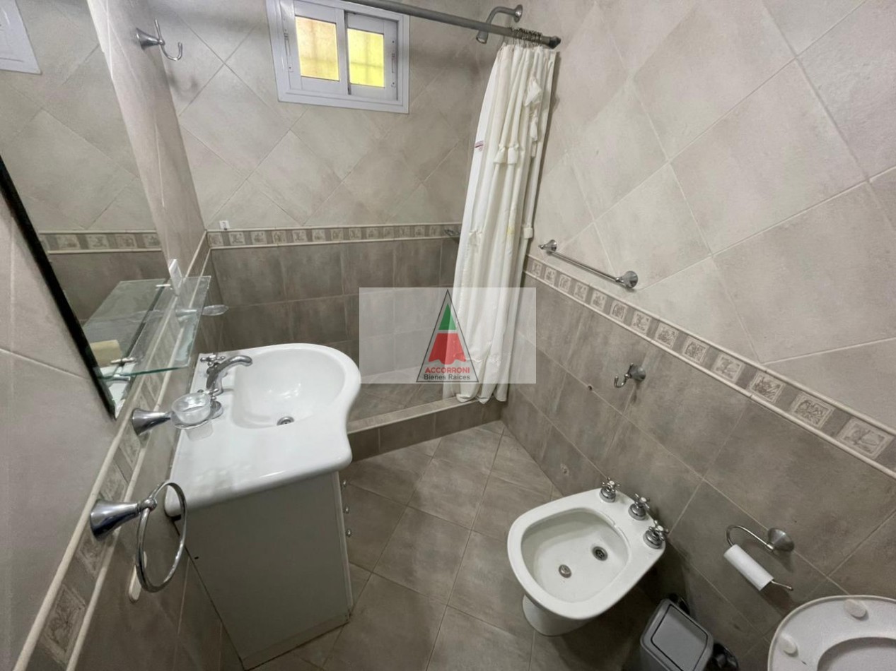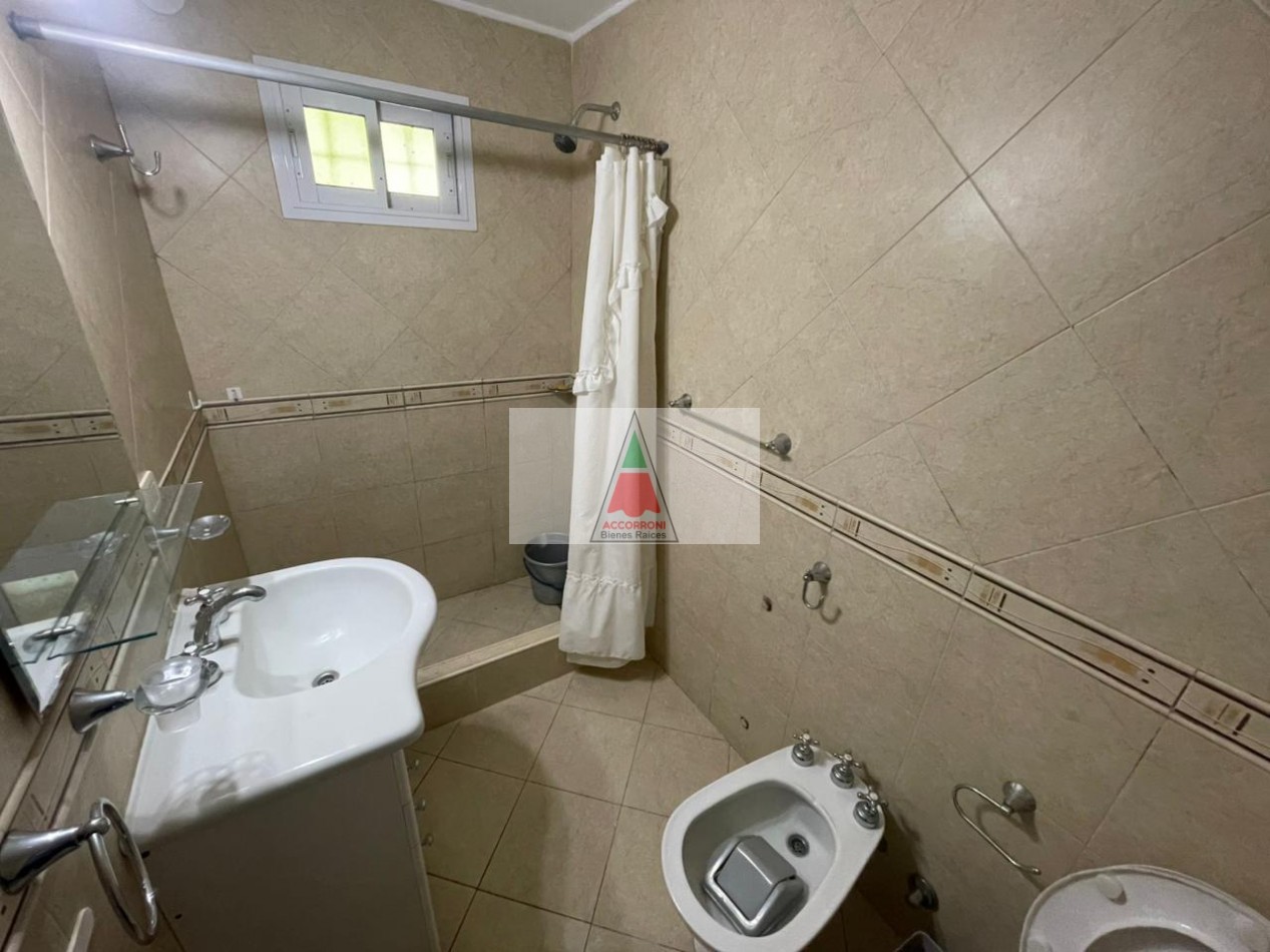 Excelente y amplio chalet en privilegiada ubicación, al ingreso nos encontramos con un gran y luminoso living comedor separada por una barra nos encontramos la cocina totalmente equipada y un ventanal con salida a un patio semi cubierto, parrilla y un muy amplio y pintoresco parque. En la parte interior cuenta con un dormitorio matrimonial, un baño completo, un dormitorio con 2 camas simples, un dormitorio con 2 camas cuchetas y otro baño completo. Estacionamiento semicubierto, ubicada a menos de media cuadra del mar y cinco cuadras y media del centro de Valeria del mar. Servicio de alarma, wifi y tv, capacidad de 8 personas.
