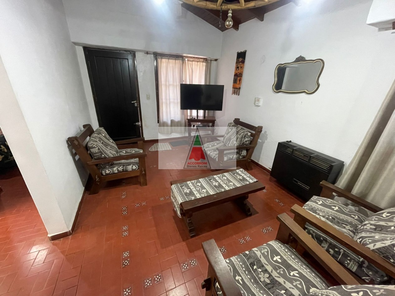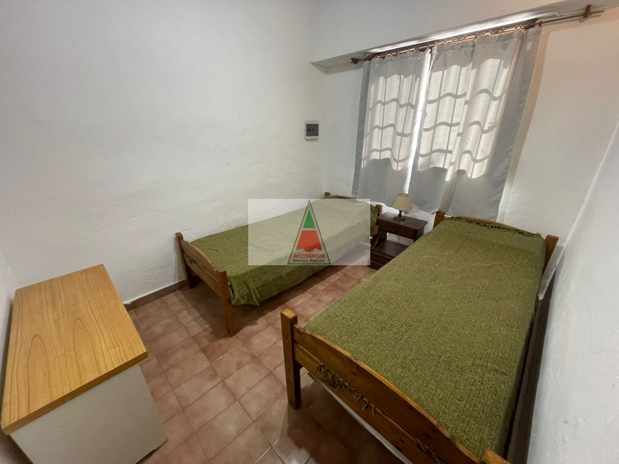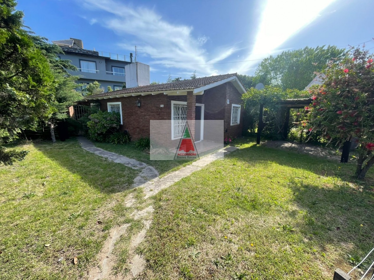Agradable chalet distribuido totalmente en planta baja cuenta con, amplio parque, patio con parrilla y estacionamiento (Ambos semi-cubiertos). Al ingreso tenemos un living comedor con sillón y Tv, cocina con salida al patio, dormitorio con dos camas simples, dormitorio matrimonial y baño completo. Servicio de wifi, alarma y tv. Una cuadra del mar y seis del centro, capacidad de 4 personas.