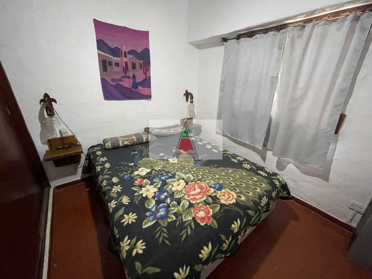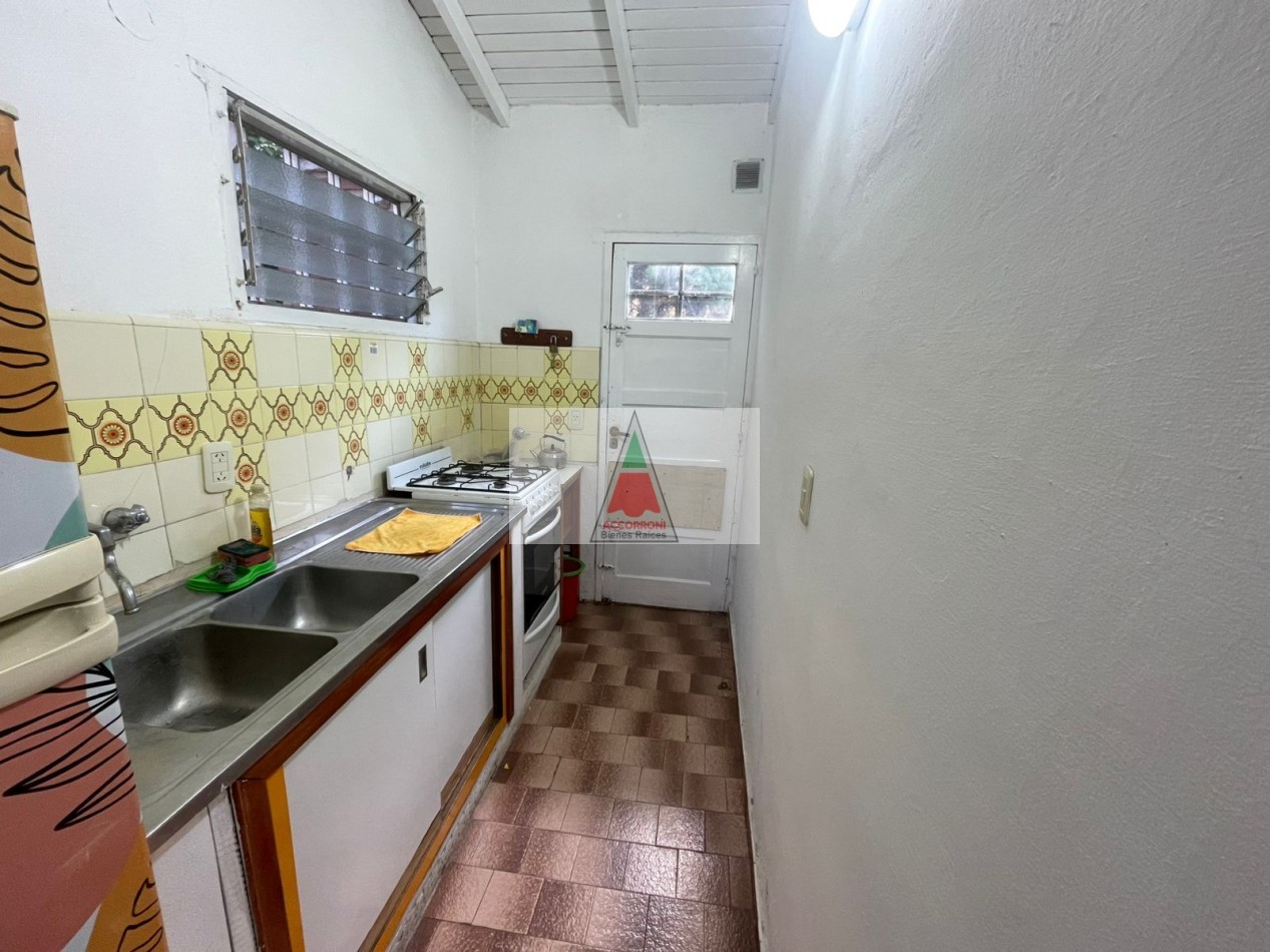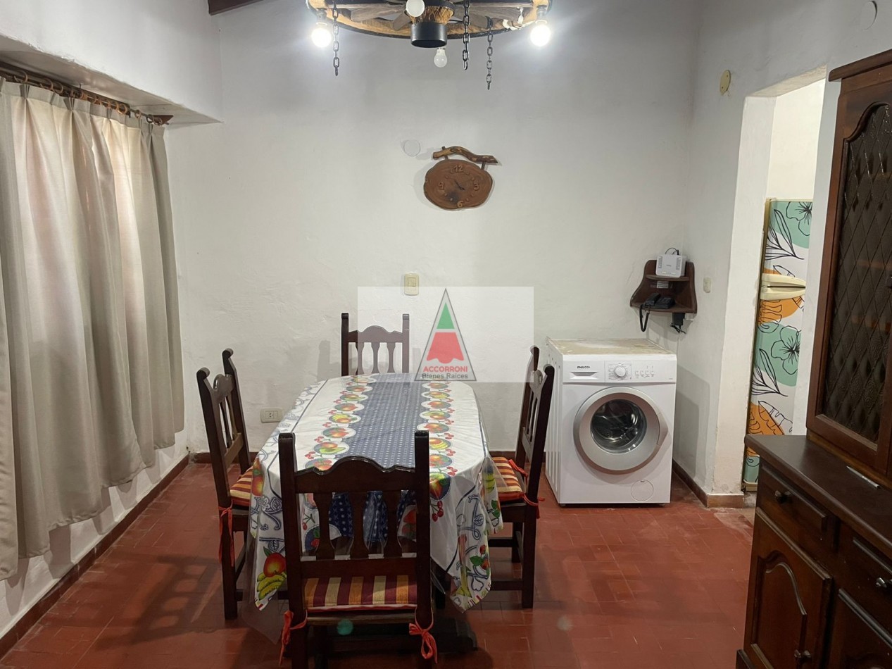 Agradable chalet distribuido totalmente en planta baja cuenta con, amplio parque, patio con parrilla y estacionamiento (Ambos semi-cubiertos). Al ingreso tenemos un living comedor con sillón y Tv, cocina con salida al patio, dormitorio con dos camas simples, dormitorio matrimonial y baño completo. Servicio de wifi, alarma y tv. Una cuadra del mar y seis del centro, capacidad de 4 personas.